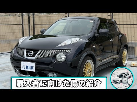 【車両カスタム装備】 ・LEHRMEISTERホイール ・tanabeタワーバー ・フジツボマフラー ・デカール 【その他付属装備】 ・ETC ・ドライブレコーダー 【特別装備】 ・キセノンヘッドランプ(ロービーム/オートレベライザー付) ・クールブラックフロントグリル ・クールブラックバックドアモール ・ローダウンサスペンション ・エキゾーストフィニッシャー ・Urban Selectionエンブレム 【車両説明】 2011年式日産ジュークアーバンセレクションがカババに登場です!! 日産 ジュークは、ちょうどいいサイズ感と個性はルックスが魅力的なコンパクトSUVでございます。街乗りや日常使いでで活躍間違いなしの一台です。 燃費も良く、小回りも聞くことから狭い道でもスイスイ走れるため、実用性とデザインを両立したお車をお探しの方にぴったりのお車でございます。 【🔥本車両の魅力】 1.購入後のコストも抑えられる一台!! 本車両は車検もたっぷり残っており、ブレーキ類の消耗品と一式交換されており購入後のコストも抑えられる一台となります。 2.カスタム装備多数搭載! カスタム装備が足回りやマフラーなどに備わっており通常のジュークとは異なりかなりスポーティーなかっこいい仕上がりとなっております。 【車両状態】 ⚫︎外装 Fリップに下スリ、左右F.Rドア/左右F.Rフェンダーに線傷、ルーフに色褪せ、右Fホイールにガリ傷、左Rホイールに小傷、左Rドアにエクボ、ボンネット/Fバンパーに板金跡、ボンネットに脱着跡が見受けられました。 ⚫︎内装 左右F.Rサイドステップ/バックドアに小傷、運転席シート/インパネ部分に使用感、右Fドアに軽微なエクボ、左センターシートベルト挟み跡、サイドブレーキベタ付きが見受けられました。 ※本車両は10年以上前(10万km以上)の車両のためノークレームノーリターンのお取引となります。 予めご了承ください。 また本車両に対する予防整備(消耗品等)の不具合、劣化等に関しては免責事項となります。