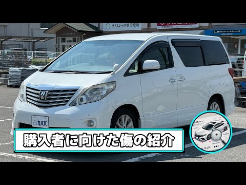 【車両おすすめ装備】 ⚫︎ALPINE後席モニター ⚫︎社外ナビゲーション ⚫︎ETC ⚫︎純正マフラー(社外マフラーは純正マフラーに戻してのお渡しとなります) ◎写真に写っているケーブルなどの私物品は取り外してのお渡しとなります。 【車両情報】 「2010年式 トヨタ アルファード 240S」が登場です!当車両は広い車内でゆったりとくつろげる室内が魅力でミニバンに必須級の「両側パワースライドドア」「ALPINE後席モニター」が装備されている魅力的な一台です! また内装は多少の使用感はあるものの年式・走行距離から考えると綺麗な状態を維持されているため、10年前の車両ですが不快感がなく利用できます。中古車市場には外観は綺麗でも内装状態があまり良くない車両もたくさんあるので、その点を考えると魅力的な車両となっています。 100万円以下で使い勝手の良いミニバンをお探しの方は是非ご検討くださいませ! 【車両状態】 ⚫︎外装 フロントガラスやFバンパーに飛び石/Fバンパーに下擦り傷/バックドアと左Fドアに凹み/ボディに擦り傷や線傷/ホイールにガリ傷などがあります。またボンネットと右Rフェンダーは傷を治すために板金塗装されています。詳しくは状態チェック動画をご確認下さいませ。 ⚫︎内装 ドア内張りやグローブボックスに線傷/助手席シートのヘッドレストに小さな破れなど多少の使用感はありますが、年式から考えると綺麗な状態を維持されています。 ⚫︎におい 当車両は現オーナー様は禁煙車でペットの乗車はないため清潔感のある車両です。 ※本車両は10年以上前の車両のためノークレームノーリターンのお取引となります。予めご了承ください。また本車両に対する予防整備(消耗品等)の不具合、劣化等に関しては免責事項となります。