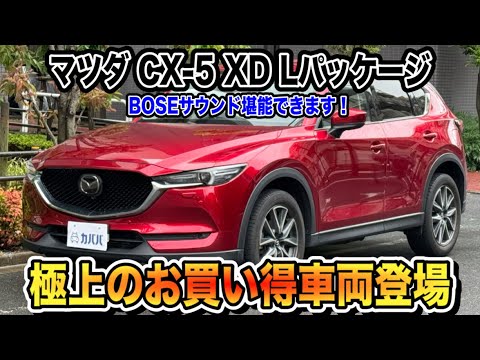【車両おすすめポイント!!】 2018年式のマツダCX-5「XD L Package 4WD」は、個人ワンオーナーかつディーラー整備記録付きの安心感が魅力の一台です。車検も令和9年3月までたっぷり残っており、購入後すぐに費用がかからない点も嬉しいポイント。さらに、メーカーオプションのBoseサウンドシステムや360°ビューモニター、フルセグTVなど充実装備を備えており、上級グレードらしい快適性と上質さが際立ちます。大切に扱われてきた個体で、内外装ともにコンディション良好。お探しの方におすすめです。 【車両おすすめ装備】 ■有償色:ソウルレッドクリスタルメタリック ■CD/DVDプレイヤー+地上デジタルTVチューナー(フルセグ) ■Boseサウンドシステム (AUDIOPILOT2+Centerpoint2)+10スピーカー ■360°ビューモニター ■フロントパーキングセンサー(センター/コーナー) ■L Package標準装備 ・レザーシート(運転席パワーシート+シートヒーター) ・スマートシティブレーキサポート(前後) ・アダプティブクルーズコントロール(MRCC) ・LEDヘッドライト ・電動リアゲート(パワーリフトゲート) ・ブラインドスポットモニタリング(BSM) 【こんな人におすすめ!】 ①・長く乗れる安心個体を探している方 ②・装備充実の上級グレードを求める方 ③・ディーラー整備・過去の経歴にこだわる方 ④・車検が長く、すぐに乗り出したい方 ⑤・上質な音響や安全装備を重視する方 【車両気になる状態は?】 本車両は2018年式ながら、年数相応として非常に良好なコンディションを保っています。外装には大きく査定に影響するような傷は見受けられず、小キズもごくわずかで全体的に丁寧に扱われてきた印象です。内装も禁煙車のためタバコなどの不快な臭いは一切なく、シートや内張りの状態も上々。特に後席はほとんど使用されておらず、使用感も最小限にとどまっています。清潔感があり、次のオーナーにも気持ちよくお乗りいただける一台です。 お車のクオリティや車内の詳細で少しでも気になる点がございましたら、お気軽にご相談ください!!装備や状態についても、分かりやすく丁寧にご案内いたします。🚗🚗