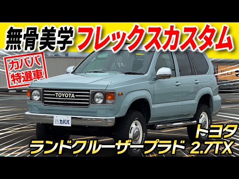 「2006年式 トヨタ ランドクルーザー プラド」がカババに登場!取材スタッフも驚くほど良好なコンディションに加え、フレックスによるカスタムが施され、他にはないレトロポップなあるデザインに仕上がった一台です。憧れのランドクルーザーに、個性と存在感を求める方にぜひおすすめしたい車両です!