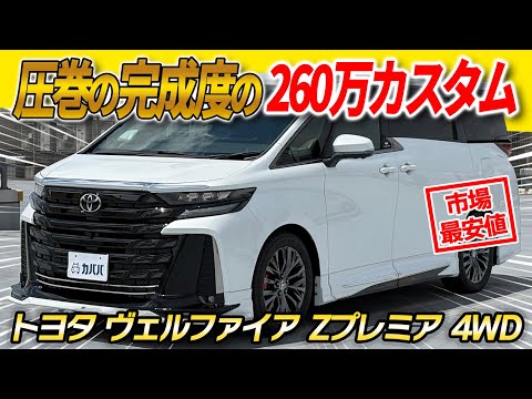 2023年式 トヨタ ヴェルファイア Zプレミア 4WD がカババに出品です! 総額およそ264万円のオプション装着・カスタムが施された本車両。市場に少ない寒冷地仕様、必須級のメーカーオプションに加え、GRやモデリスタエアロによる堂々としたスタイリング、球屋のハイクオリティなLEDが内外装の上質さを一段と向上させております! 唯一無二と呼ぶにふさわしい1台をぜひご検討くださいませ!