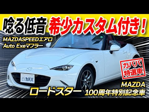 マツダ ロードスター 100周年記念車 MT 100周年記念に造られたモデルという事もあり、随所に光るバッチが目を惹きます!それだけではございません!珍しい純正エアロに加え重低音を奏でるAuto Exeマフラー。どこを取っても他の車に劣るところが無い極上の1台を是非この機会にご購入お待ちしております。