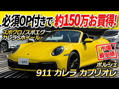 2020年式 ポルシェ 911 カレラ カブリオレ がカババに出品です! 本車両の魅力はなんといっても、オープンエアドライブと、魅力的なオプション装備類! ポルシェを代表する911の中でも最も開放的なドライビングが楽しめます!さらに、スポクロやスポーツエグゾースト等、所有満足度を底上げしてくれるオプションもしっかり装着。 出所やメンテナンス状況も安心感の高い1台です。ぜひご検討くださいませ!