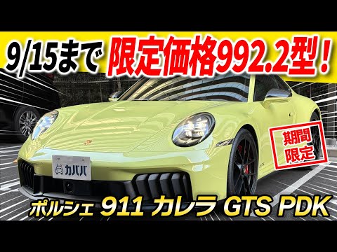 2025年式 ポルシェ 911 カレラ GTS PDK がカババに出品です! 市場に出回りのないカルタヘナイエローのボディは、キャリパーや内装のレッドとの相性が良く、実車は写真以上に艶やかな美しさを放っています。 電動ガラスサンルーフやBOSEサラウンドサウンドシステム等、ラグジュアリーな装備を中心に多数のオプションが装備された1台です。 2週間限定出品のためお買い得プライスにてご出品いただきましたので、ぜひご検討くださいませ!