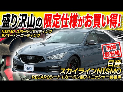 日産スカイラインNISMO RECAROシート+カーボン製フィニッシャー装着車NISMOスポーツチタンマフラー/NISMOスポーツリセッティング2/1000台限定/NISMO専用装備/EXキーパーコーティング/屋内保管/スタッフおすすめ車両