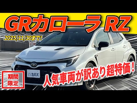 【オプション一覧】 ・プラチナホワイトパールマイカ ・カラーヘッドアップディスプレイ ・ブラインドスポットモニター ・シートヒーター(運転席・助手席) ・ステアリングヒーター ・ディスプレイオーディオ(コネクティッドナビ対応)Plus ・10.5インチHDディスプレイ ・8スピーカーJBLサウンドシステム ・寒冷地仕様 【新車保証継承について】 本車両は修復歴ありの個体の為、本来受けられる新車保証継承を受けられない可能性がございます。 ご購入前に必ずご自身で確認の上、お手続きをお願いいたします。 なお、補償を受けられる際の期間については下記の通りになります。 ◎基本保証 令和8年6月27日まで ◎特別保証 令和10年6月27日まで 【車種紹介】 2023年式 トヨタ GRカローラ RZ。 GRヤリス譲りのGR-FOUR(電子制御多板クラッチ式4WD)と、専用開発の1.6L直列3気筒ターボエンジン(G16E-GTS型)を組み合わせた、まさに“走るために生まれた”ホットハッチです。6速マニュアルを介して304PSを発揮し、細部までGR専用チューニングが施された足まわりとボディ補強により、鋭いハンドリングと圧倒的なトラクション性能を実現。公道でもサーキットでも、トヨタのモータースポーツスピリットを感じられる1台です。 【この個体の魅力】 ボディカラーは人気のプラチナホワイトパールマイカ。 快適装備も充実しており、カラーヘッドアップディスプレイ・ブラインドスポットモニター・前席シートヒーター&ステアリングヒーター・寒冷地仕様と、スポーツモデルながら日常ユースにも配慮されています。 さらに、10.5インチHDディスプレイオーディオ Plus(コネクティッドナビ対応)や8スピーカーJBLサウンドシステムを搭載し、上質なドライブ空間を演出。 新車時にはトヨタ純正QMIドライグラスコーティングが施工されており、ボディの艶も保たれています。 また本車両は、コアサポートAssy交換及びフロントクロスメンバーを交換しており、修復歴有のお車となりますが、しっかりと修理済みで走行・機能面に支障はなく、現状のコンディションも良好です。 その分、相場よりも大変お求めやすい価格設定となっており、GRカローラRZをこの価格で手にできる機会は極めて稀。 状態・価格のバランスに優れた1台です。 今月限定での販売になりますので、ぜひご決断ください。 【整備記録】 R5.8 653km 1ヶ月点検 R5.12 2299km 6ヶ月点検 R6.5 3907km 1年点検 R7.5 6734km 1年点検 全てディーラーにて整備されてます。 【車両コンディション】 外装:フロント部分に軽微な飛び石傷/右リア&左リアホイールガリ傷/ボンネット&フロントバンパー&左フロントフェンダー交換 内装:中古車ですので多少の小傷や汚れなどはあるかと思いますが、大きな傷や破損等はなく綺麗な状態を維持されております。 本車両に対する予防整備(消耗品等)の不具合、劣化等に関しては免責事項となります。