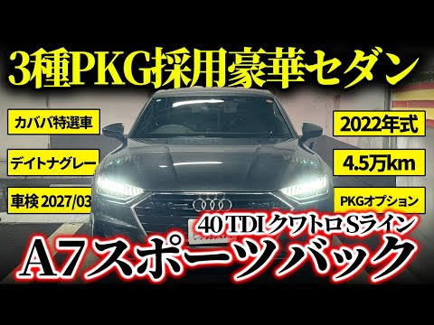 【オプション】 ◉Slineパッケージ ・スポーツサスペンション ・スポーツシート/バルコナレザーS lineロゴ ・ステアリングホイールスポークレザーマルチファンクションパドルシフト ・電動チルト/テレスコピックステアリングコラム ・S line エクステリア ・アルミホイール 5ツインスポークVデザイン グラファイトグレー8.5]✕20 ・デコラティブパネル マットブラッシュトアルミニウム ・マルチカラーアンビエントライティング ・HDマトリクスLEDヘッドライト ・LEDリヤコンビネーションライト/ダイナミックターンインディケーター ・サラウンドビューカメラ ・パークアシストプラス ◉テクノロジーパッケージ ・4ゾーンデラックスオートマチックエアコンディショナー ・パワークロージングドア ・シートヒーター(フロント/リヤ) ・ワイヤレスチャージング ・ステアリングホイールスポークレザー マルチファンクションパドルシフト ヒーター ・エクステンデッドアルミニウムブラック/ブラックグラスルックコントロールパネル ・マルチカラーアンビエントライティング ◉ラグジュアリーパッケージ ・コンフォートシート(フロント) ・バルコナレザー/ミラノレザー ・シートベンチレーション(フロント) ・シートメモリー(フロント) ◉本車両の魅力 本車両はS lineパッケージ・テクノロジーパッケージ・ラグジュアリーパッケージの三拍子が揃った、装備面で妥協のない一台です。S line専用の20インチアルミホイールやスポーツサスペンション、HDマトリクスLEDヘッドライトにより、A7ならではの流麗なデザインにさらに精悍さと存在感をプラス。インテリアにはバルコナレザー/ミラノレザーを採用したコンフォートシートを備え、シートベンチレーションやメモリー機能など快適装備も充実しています。加えて4ゾーンエアコンやパワークロージングドア、サラウンドビューカメラ、パークアシストプラスなど先進装備も揃い、日常からロングドライブまで上質で快適な移動空間を実現。デザイン・走行性能・快適性すべてを高水準で満たした、満足度の高いA7 40TDI S lineです。 ◉車両概要 2022年式アウディ A7 40TDI Sラインは、エレガンスとスポーティを高次元で融合したラグジュアリーセダンとして人気を集めています。2.0Lディーゼルターボ「40TDI」エンジンはトルクフルで低回転から力強く、燃費性能と力強い走りを兼ね備え、都会の街中からロングドライブまで幅広く対応。Sライン専用エクステリアは存在感あるフォルムを演出し、スポーティな足回りと相まって躍動感あふれる走りを実現します。標準装備として先進のドライブアシストや快適装備、高級感あるインテリアが充実し、同クラスの中でも質感・走行性能・安全性の三拍子が揃った一台です。アウディブランドの魅力を存分に味わえるA7は、上質なセダンを求める方に自信をもっておすすめできる1台です。 【車両状態】 ◉外装: ・フロント周りに飛び石数カ所 ・リアバンパーに小傷 ・左右ドアエッジに微小な傷 ・左ミラーに小傷 ・右前後ホイールにガリ傷 ・左リアホイールにガリ傷 ◉内装: ・シートに日焼け止めと思われる白い汚れ数カ所 その他: ・禁煙車、ペット無しのため不快な匂いは感じません ・電装系やエンジンの異音なども確認できませんでした。