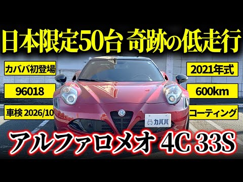 【車両説明】 2021年式のアルファロメオ 4C ファイナルエディション 33ストラダーレは、4Cシリーズの生産終了を記念して登場した限定モデルです! 1967年に誕生した伝説的名車「33ストラダーレ」へのオマージュとして企画され、デザイン・装備・希少性のすべてにおいて、通常の4Cとは一線を画す特別な一台となっています! エクステリアには、33ストラダーレを象徴する専用ボディカラー「ロッソ・ヴィラデステ」を採用。 情熱的で深みのあるレッドが、軽量ミッドシップスポーツである4Cの造形美をより際立たせています! 本モデルは世界的にも生産台数が限られており、日本国内では右ハンドル仕様わずか50台限定で販売された希少モデルです。 生産終了モデルかつファイナルエディションという背景から、現在では流通数も少なく、コレクターズアイテムとしての価値も高まりつつあります! 【本車両の魅力】 本車両はワンオーナーで、出品時点の走行距離はわずか569kmという極めて低走行の個体です。これまで丁寧に扱われてきたことがうかがえ、コンディション面でも非常に魅力的な一台となっております。 また、エアコン付きの屋内ガレージにて保管されていたため、直射日光や湿気の影響を受けにくく、内外装ともに良好な状態が保たれています。 本モデルはファイナルエディションとして日本国内限定50台のみという希少性の高い車両で、流通台数も非常に限られています。今後の価値上昇も期待でき、走行距離・保管環境・コンディションの三拍子が揃った個体として、コレクターの方にもぜひおすすめしたい一台です。 気になった方は是非この機会にご検討くださいませ!