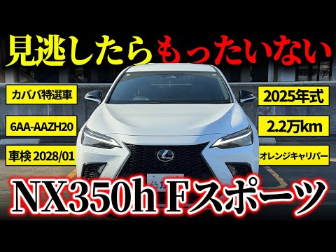 【こんな人にオススメ!】 ・コンディション抜群な2025年式個体をお探しの方 【車両おすすめ装備】 ⚫︎オレンジキャリパー ⚫︎純正ドライブレコーダー ⚫︎フロアマット ⚫︎ラゲッジスペースマット ⚫︎ヘッドアップディスプレイ ⚫︎ETC ⚫︎マツダ MG-Rコーティング(施工証明書なし) ※現在、社外ホイール+スタッドレスタイヤを装着されていますが、純正ホイール+サマータイヤに変更してのお渡しとなります。(掲載写真No.8〜9) ※スマートキーの内訳は、スマートキー2本とカードキー1本になります。 【車両情報】 人気のコンパクトクロスオーバーSUV、「2025年式 レクサス NX 350h Fスポーツ」が登場です。 搭載される2.5Lハイブリッドシステムにより、スムーズで静粛性の高い走りと、優れた燃費性能を両立し、市街地から高速道路までストレスのない上質なドライブフィールを提供してくれます。 Fスポーツ専用チューニングによる引き締まった足回りは、しなやかさと安定感を高次元でバランスさせ、ドライバーの意思に忠実なハンドリングを実現しています。 更に、Fスポーツの象徴とも言えるオレンジキャリパーが装備され、精悍なブラック基調の足回りに鮮やかなアクセントを加わり、強い存在感を放っております。 先進安全装備や快適装備も充実しており、日常使いからロングドライブまで、あらゆるシーンでレクサスならではの安心感と上質さを実感できる1台です。 【本車両ならではの魅力】 マツダ MG-Rコーティングを施工されており、きめ細かい粒子の美しいホワイトノーヴァガラスフレークのボディが更にツヤ感を増しております。 ワンオーナー様によりディーラー点検を受けられており、保管環境も良好な、個人売買でもより安心感の高い1台です。 【メンテナンス歴】 R7/2 点検ディーラー(2085km) R7/12 点検ディーラー(19189km) 【車両状態】 ⚫︎外装 フロントバンパー下部に小さな飛び石傷がございますが、全体的に非常に綺麗な状態を維持されています。詳しくは掲載写真及び現車確認動画をご覧ください。 ⚫︎内装 取材時には全体的に綺麗な状態を維持されていました。詳しくは掲載写真及び現車確認動画をご覧下さい。 ※ あくまで中古車のため飛石、使用に伴う傷は免責事項の上ご検討ください。 ⚫︎におい 当車両は禁煙車となっており、ペットのご乗車もないため、気になるにおいなどはございません。 【新車保証継承可能】 最寄りの正規ディーラーにて12ヶ月点検相当の法定点検(有償)を実施することにより、新車保証も継承可能なため個人売買ながらも安心してご購入いただけます。 ◎カババプラチナ保証対象車両! 納車日の翌日から最長5年間、新車時のメーカー保証と同水準の保証部品範囲で、車両本体価格までの金額を上限として保証を受けることができます。(有償) そのため個人売買ながらも、購入後の故障リスクを、新車購入時と同等の水準にて安心してご購入いただけます。