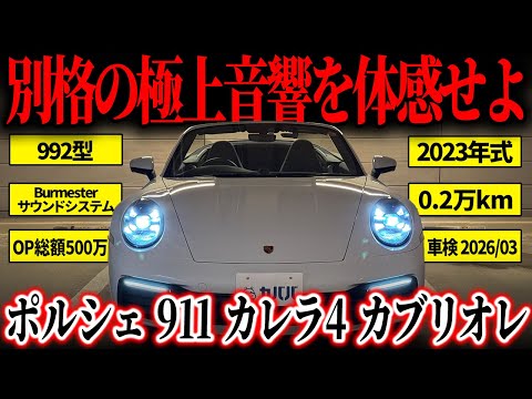2023年式 ポルシェ 911 カレラ4 カブリオレがご出品です。伝統的な911のデザインに最新技術を融合した992型モデルで、電動ソフトトップと4WDシステムを備え、日常から特別なシーンまで幅広く対応します。天候を問わず安定した走行性能を発揮し、オープン時にはフラット6エンジンのサウンドとともに、911ならではの一体感あるドライブを堪能可能。キャララホワイトメタリックのボディに20/21インチTurboホイールを組み合わせ、上質かつスポーティな佇まいを演出しています。レザーインテリアやBurmesterサウンド、先進運転支援装備も充実した完成度の高い一台です。