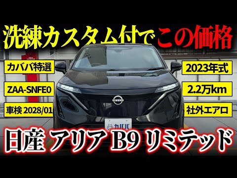 【オススメ装備】 ◎社外エアロパーツ(フロント,サイド,リヤ) ◎22インチAW(WALD) ◎BOSEサウンド ◎パノラマルーフ ◎前後シートヒーター ◎デジタルインナーミラー ◎レーダー探知機 ※現在スタッドレスタイヤと社外ホイールを履かれておりますが、お渡しの際は夏用タイヤと22インチAWに履き替えてのお渡しです。予めご了承ください。 【モデルの特徴】 2023年式「日産アリア B9 e-4ORCE リミテッド」は、91kWhの大容量バッテリーと新世代の電動4輪制御技術「e-4ORCE」を搭載した、アリアの魅力を象徴する最上級の限定導入モデルです。前後の高出力モーターが緻密に連動することで、力強い加速と路面に吸い付くような安定したコーナリング、そして揺れの少ないフラットな乗り心地を高い次元で両立しています。航続距離はWLTCモードで560km(カタログ値)を実現しており、ロングドライブも余裕を持って楽しめます。装備面では、ハンズオフ走行を可能にする「プロパイロット2.0」や「パノラミックガラスルーフ」、さらには上質な「ナッパレザーシート」といった専用装備が標準化されており、国産EVの最高峰にふさわしい圧倒的な先進性とプレミアムな室内空間を兼ね備えた一台です。 【本車両のココがオススメ!】 本車両は、最上級グレード「B9 e-4ORCE リミテッド」をベースに、細部までこだわり抜かれた唯一無二のカスタムが施された一台です。まず目を引くのは、社外フルエアロ(フロント・サイド・リヤ)と22インチWALD製アルミホイールが織りなす圧倒的な存在感です。ミッドナイトブラックのボディカラーと相まって、純正のアリアとは一線を画す、より低重心でスポーティなオーラを放っています。 車内においても、開放感あふれるパノラマルーフや、臨場感豊かなBOSEプレミアムサウンドシステムなど、リミテッド専用の豪華装備が充実しています。さらに、デジタルインナーミラーやレーダー探知機といった安心・安全を支える後付け装備に加え、自宅充電に欠かせない200V用ケーブルが付属している点も、次オーナー様にとっては非常に嬉しいポイントです。ラグジュアリーな快適性と、洗練されたカスタムスタイルを両立させた、まさに「完成されたEV」と言える内容に仕上がっています。 【車両状態】 ◎外装 -フロントガラス/フロントバンパー 飛び石傷 -フロントバンパー 小傷,タッチペン跡 -右リヤドア 小傷 ※WALDのホイールにガリ傷がついているとのことでしたので、予めご了承ください。 ◎内装 -ドア内張 小傷 -運転席シート 使用に伴うシワ ※写真や情報だけでは分かりづらい部分もあるかと思います。はじめての方でもご安心ください。お問い合わせいただければ、経験豊富なスタッフがすぐに丁寧にご案内いたします。 ご相談だけでも大歓迎ですので、ページ下部の『問い合わせボタン』よりお気軽にご連絡ください🚙