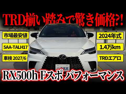 【期間限定お値下げ❗️(〜4/31)】 現在(3/20)の出品価格878万円より、858万円まで期間限定で本体価格をお値下げいたします❗️ 4/30以降、掲載を終了いたしますので、受注制限や納期が長くなってしまいがちなRX 500hをこの機会にぜひご検討ください! 【オプション装備】 ◎TRDリヤディフューザー&スポーツマフラー 374,000円 ◎TRDフロントスポイラー 167,200円 ◎TRDサイドスカート 177,100円 ◎TRDリヤウイング 97,900円 ◎TRDエアロダイナミクスミラーカバー 81,400円 ◎パノラマルーフ(チルト&アウタースライド式) 176,000円 ◎235/50R21 F SPORT Performance専用アルミホイール(ダークメタリック塗装) 110,000円 ◎IRカットフィルム(タイプB) 52,800円 ◎ルーフレール 33,000円 ※ITS Connectは選択されておりません。 【モデルの特徴】 レクサスの電動化を牽引するハイパフォーマンスモデルであり、2.4Lターボエンジンと高出力モーターを組み合わせた「2.4L-T HEV」システムを搭載しています。新開発の4輪駆動システム「DIRECT4」が走行状況に応じて前後輪のトルクを緻密に制御し、ダイナミック・リア・ステアリング(DRS)との相乗効果により、巨体を感じさせない鋭い旋回性能と安定した加速を実現しました。専用の21インチホイールや6ピストンブレーキキャリパー、上質なスエード内装など、走りの質とラグジュアリーを極めたシリーズ最上位にふさわしい一台です。 【本車両のココがオススメ!】 最大の魅力は、総額90万円相当に及ぶTRD製のエアロパーツを網羅している点です。フロントスポイラーからサイドスカート、リヤディフューザー、さらにはスポーツマフラーやリヤウイングに至るまで贅沢に装着されており、RX500hの精悍なスタイルをより一層際立たせています。特にスポーツマフラーが奏でるサウンドと迫力のリアビューは、他個体とは一線を画す圧倒的な存在感を放ちます。 機能面においても、開放感あふれるパノラマルーフやスタイリッシュなルーフレールを備え、SUVとしての利便性とラグジュアリーさを両立しています。足元にはダークメタリック塗装の専用21インチアルミホイールを履き、室内は鮮やかな赤内装(ダークローズ)で仕立てられた、まさに「F SPORT Performance」の走りと質感をフルに堪能できる、妥協のない一台です。 【車両状態】 ◎外装 -フロントバンパー 飛石傷 -ウィンドウモール/ドアハンドル 雨染み ※リヤバンパーの両端にピンクの塗料が飛んだ跡がございます。ほとんど目立たない程度ですが、予めご了承ください。 ◎内装 運転席シートに使用に伴うシワは見受けられましたが、全体的にかなり使用感の少ない状態が保たれておりました。 【新車保証継承可】 新車保証継承の際はご自身でディーラーのご予約をして、お車を持ち込んでいただく必要がございます。費用に関してはお近くの正規店にてご確認ください。