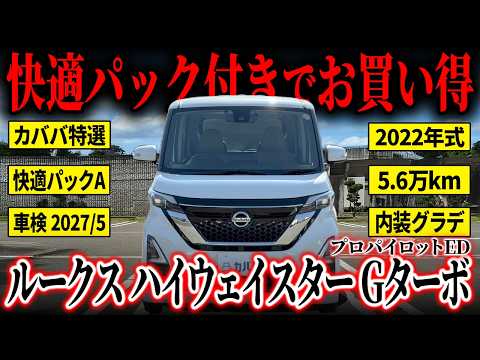 【装備品】 ○快適パックA+プレミアムグラデーションインテリ ・本革巻きステアリング(ブラウン) ・レザー調インストパネル ・ドアトリムクロス(合皮) ・シート地(合皮/トリコット) ・プラズマクラスター技術搭載リヤシーリングファン ・パーソナルテーブル(後席:カップホルダー/コンビニフック/折りたたみ格納式) ・USBソケット ・ロールサンシェード(リア) ・撥水加工シート 【車両紹介】 2022年式 日産 ルークス ハイウェイスター Gターボ プロパイロットエディション(FF) は、日産の軽スーパーハイトワゴン「ルークス」の上級仕様グレードです。 0.66Lターボエンジン+CVTで軽自動車ながら力強い加速性能を持ち、街中から高速まで余裕ある走りを楽しめます。プロパイロット(渋滞時追従・車線維持支援)やアダプティブLEDヘッドライトなど先進安全装備が標準装備され、快適性と安全性が高いのが特徴です。 室内は広く使い勝手が良く、両側スライドドアで乗降もスムーズ。 都市部でも扱いやすいコンパクトサイズながら、家族や荷物にも優しい仕様となっています。 ?本車両の魅力 本車両は、軽自動車とは思えないほど上質な室内空間と快適装備が魅力です。ご家族とのお出かけやご友人様とのドライブもゆったり楽しめる一台です。後席にはプラズマクラスター技術搭載リヤシーリングファンやロールサンシェード、USBソケット、パーソナルテーブルを備え、長時間の移動でも同乗者が快適に過ごせる空間を実現。 お子様との買い物帰りや、週末のちょっとした遠出でも車内はいつも快適です。 撥水加工シートでお手入れもしやすく、日常使いにも安心。 上質なインテリアと爽やかなホワイトパールのボディが、毎日の移動時間を少し特別なひとときへと変えてくれます。 【車両状態】 ・ボンネット/フロントバンパーに飛び石がございます。 その他の中古車両の為車両全体的に薄い線傷や小傷が検出できますが、現オーナー様が新車でご購入されてからご丁寧に使用されるなど、年式や走行距離や年式から見ても綺麗な状態を保たれております。 またエアコンの匂いに関しても気になる部分なく、中古車としての不安点もしっかりカバーされております。 本車両ペットの乗車歴なども特にないため、アレルギーをお持ちの方でもご安心してお選びいただけるお車です。 【注意事項】 本車両に対する予防整備(消耗品等)の不具合、劣化等に関しては免責事項となります。