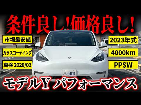 【装備品】 ・オートパイロット ・パフォーマンスブレーキ ・オールブラックプレミアムインテリア ・パールホワイトマルチコート(PPSW) ・21インチウーバータービンホイール ・カーボンファイバースポイラー ・パフォーマンスAWD ・パフォーマンスペダル ・5シートインテリア ・ドアノブフィルム(ホワイトカラー) ・両リアドアプロテクションフィルム ・ガラスコーティング施工済 ・純正USBドライブ付属! ※写真に写っているフロアマットや、トランクマットは取り外してお渡しいたします。 ※FSDやエンハンストオートパイロットは装備しておりません。 【車両紹介】 2023年式テスラモデルYパフォーマンスがカババに登場です! SUVの実用性と圧倒的な加速性能を高次元で両立したハイパフォーマンスEVです。 デュアルモーターAWDにより0-100km/h加速は約3.7秒とスポーツカー並みの俊足を実現。 低重心バッテリーによる安定した走りに加え、最大約534psの力強い出力で高速域まで余裕の加速を楽しめます。 さらに、大型15インチタッチスクリーンを中心とした先進的インテリアやオートパイロットなど、テスラならではの最新テクノロジーも魅力。速さ・快適性・先進性を一台で味わえる、次世代SUVの完成形といえるモデルです。 ?本車両の魅力 本車両は今年1月に車検を取得したばかりで、2028年2月までたっぷり残存しており、購入後の維持面でも安心の一台です。 さらに走行距離はわずか5,000km未満と非常に低走行。内外装ともにコンディション良好で、次のオーナー様にも気持ちよくお乗りいただける状態を保たれております。 これほどの好条件を兼ね備えながら、大変魅力的なプライスでのご出品。 気になる方はお早めにお問い合わせください! 【保証関連】 ●基本車両限定保証 ・2027年2月11日または走行距離合計80,000km(いずれか早い方) ●バッテリー限定保証 ・2031年2月11日または走行距離合計192,000km(いずれか早い方) ●ドライブユニット限定保証 ・2031年2月11日または走行距離合計192,000km(いずれか早い方) 【車両状態】 ・フル充電時実航続可能距離450km~500km (走行環境や使用方法により前後します。) ・ヘッドライトにかなり軽微な飛び石がございます。 その他の中古車両の為多少の使用感などはございますが、歴代オーナー様が非常に丁寧にご使用されていたこともあり、きれいな状態を保たれております! 本車両、禁煙となっているため特に不快な匂い等なく、またエアコンに関しても特に気になる匂いはございませんでした。 また、ペットの乗車歴も特にございませんので、アレルギーをお持ちの方でもご安心してお選びいただけます! 【注意事項】 ・本車両に対する予防整備(消耗品等)の不具合、劣化等に関しては免責事項となります。 ・本車両に関わらず、テスラはポジションライトが切れやすいため予めご了承ください。メーカーの新車保証期間内であれば交換が可能です。 ・自動車税 免税対象地域以外のお住まいの方が購入される場合、自動車税が発生することがございます。ご了承下さい