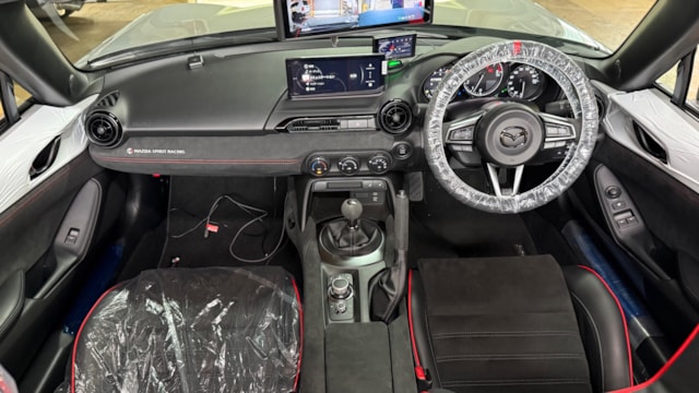 【車両装備】 ■ MAZDA SPIRIT RACING ROADSTER KIT ・フロントアンダースカート(ブリリアントブラック) ・サイドアンダースカート(ブリリアントブラック) ・リアスポイラー(ブリリアントブラック) ・リアアンダースカート(ブリリアントブラック) ・リベット(フロントアンダースカート用) ・保護フィルム(リアアンダースカート/リアスポイラー用) ・バックプライマー(リアアンダースカート用) ・フロアマット ・セレクティブキーシェル ■ スターターパッケージ(MAZDA SPIRIT RACING ROADSTER用) ・サイドデカール(ブリリアントブラック) ・マツダオンラインナビ用SDカード ●電子装備 ・ETC2.0 ・バックガイドモニター(パナソニック製) ・レーダー探知機「ZERO809LV」 ・ドラレコ内蔵デジタルインナーミラー ●カスタム装備 / その他 ・ホイールナットセット ・脱着式カップホルダー(助手席側) ・QMIドライグラスコーティング(ボディ) ・ホイールコーティング 【車両説明】 マツダ ロードスターは「人馬一体」の走りを追求したライトウェイトスポーツとして世界中で愛され続けているモデルです。コンパクトなボディと軽快なハンドリングにより、ドライビングの楽しさをダイレクトに味わえる一台となっています。 本車両は2026年式「マツダスピリットレーシング ロードスター」で、日本仕様には設定のない2.0Lエンジンを搭載した特別な幌モデルです。さらに限定2,200台という希少性を持ち、コレクション性の高い一台となっています。 専用エアロキットの装着により外観の完成度も非常に高く、加えて電子装備やコーティングも施工済みのため、購入後すぐに高い満足度で乗り出せる仕様です。 【魅力ポイント】 ⭐️世界限定2,200台の希少モデル! 生産台数が限られた特別仕様車であり、今後の価値面でも注目される一台です。コレクション性の高さも大きな魅力となっています。 ⭐️日本未設定の2.0Lエンジン搭載! 国内仕様には存在しない2.0Lエンジンを搭載し、通常モデルとは一線を画す走行性能を実現しています。 ⭐️専用エアロ装備で完成度の高い仕上がり! MAZDA SPIRIT RACING専用エアロにより、デザイン・空力ともに高次元で仕上げられた特別仕様。所有満足度の高い一台です。 ⭐️装備充実&コーティング済みで即戦力! ドラレコ内蔵ミラーやレーダー探知機、ETC2.0など実用装備も充実。さらにボディ・ホイールともにコーティング施工済みで、購入後の手間を抑えられます。 【車両状態】 ●車内の匂い、エアコンの匂い 禁煙車かつペット乗車歴もなく、取材時に不快な匂いは確認されておりません。 ●ガラス状態 取材時、車検に影響するような損傷は確認されておりません。 ●メーター周り 取材時、警告灯の点灯は確認されておりません。 ●機関系 エンジンに不具合はなく、問題なくご使用いただけます。 ●外装 屋内保管・低頻度使用のため、全体的に良好な状態が保たれております。 ●内装 使用感少なく、良好なコンディションを維持されております。