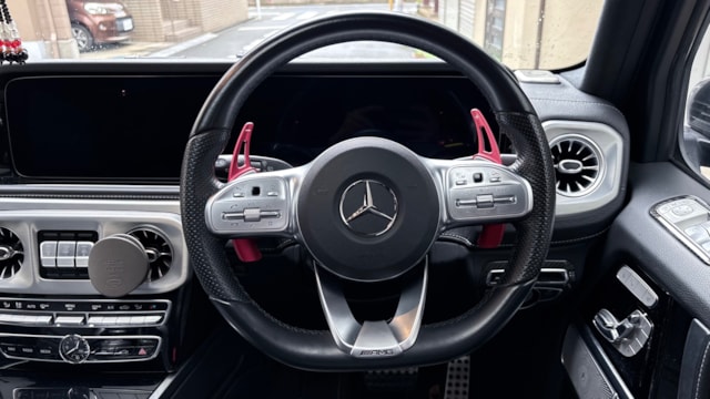 【オプション装備】 ◎AMGライン →AMGスタイリングパッケージ[フロントスポイラー、リアスカート] →20インチAMGマルチスポークアルミホイール →サイドストリップライン(ブラッシュドアルミニウム) →本革シート(ブラック) →AMGスポーツステアリング →ピアノラッカーウッドインテリアトリム →Mercedes-Benzロゴ付ブレーキキャリパー[フロント] ◎ラグジュアリーパッケージ →ガラススライディングルーフ(挟み込み防止機能付) →Burmesterサラウンドサウンドシステム ◎ドライブレコーダー 【カスタム装備】 →ブラバス フロントバンパー →カーボン調内外装パーツ(ドアハンドル/リアフェンダー/シート下部/運転席周辺) →両サイド出しマフラー →可変バルブ付きマフラー(スマートフォン操作対応) 【車両紹介】 2022年式 メルセデス・ベンツ G400d AMGラインは、圧倒的な存在感と高級感、そして本格オフロード性能を兼ね備えたラグジュアリーSUVです。3.0L直列6気筒ディーゼルターボエンジンにより、力強いトルクと優れた燃費性能を両立しています。 本車両は、ブラバス製フロントバンパーをはじめ、内外装にカーボン調パーツを多数装着したカスタム仕様が大きな魅力。さらに、可変バルブ付きマフラーにより、スマートフォンで音量やサウンドの変化を楽しめるなど、所有満足度を高める一台に仕上がっています。 また、サンルーフやBurmesterサウンドなど快適装備も充実しており、ラグジュアリー性も申し分なし。加えて、タイヤは昨年初頭に新品交換されており、溝も十分に残っているため、購入後も安心してお乗りいただけます。機械式駐車場で保管されていたことから、外装コンディションにも配慮されてきた個体です。 「Gクラス×カスタム×快適装備」 このバランスが整った一台は中古市場でも希少で、まさに特別感のある一台です。 【どんな人におすすめか】 ・ノーマルでは物足りない、カスタム済みのGクラスを探している方 ・ブラバス仕様など個性ある一台に乗りたい方 ・マフラーサウンドなど“所有する楽しさ”を重視したい方 ・高級感と存在感を両立したSUVを求めている方 【気になる車両の状態】 ■車内・エアコンのニオイ 車内で電子タバコの利用はございますが、強いニオイ残りは感じられません。ペット(猫)の飼育歴はありますが、車内への乗車歴はなく、目立つ影響は見受けられません。 ■エンジン音と振動 取材時のアイドリングは安定しており、異音や不自然な振動は確認されておりません。 ■ガラスのキズ・状態 現状、車検に影響するような大きな損傷は確認されておりません。 ■外装 左リアフェンダーに軽微な線キズが確認されております。その他大きく目立つダメージはなく、全体的に良好な状態を維持されております。 ■内装 運転席ドア内張りに小傷がございます。中古車のため使用に伴う軽微な使用感はありますが、全体としては良好なコンディションです。 【過去の整備記録】※取材時確認した記録 R4.8 26km 納車前点検 正規ディーラー R5.2 5236km 6ヶ月点検 正規ディーラー R5.8 8705km 12ヶ月点検 正規ディーラー R6.9 15910km 12ヶ月点検 正規ディーラー R7.7 走行距離記載なし 点検 整備工場 《重要》購入前にご確認をよろしくお願いします。 ※保証に関する規約にもございますが、社外品は保証対象外となることをご了承ください。 ※本車両に対する予防整備(消耗品等)の不具合、劣化等に関しては免責事項となります。 🚘 お問い合わせをお待ちしております! お車のクオリティや動画での詳細な状態(査定スタッフの見解、タイヤのヒビなど)が気になる方は、どうぞお気軽にお問い合わせください!お客様のオンライン購入をサポートいたします!