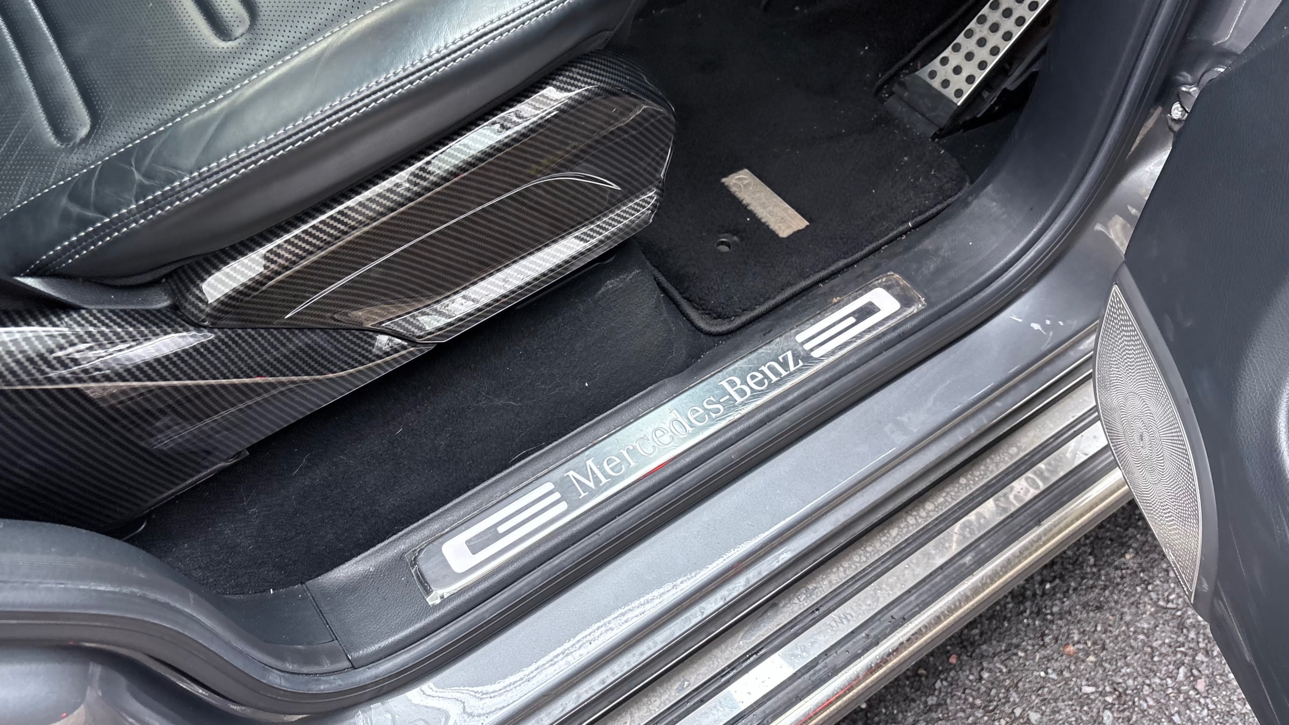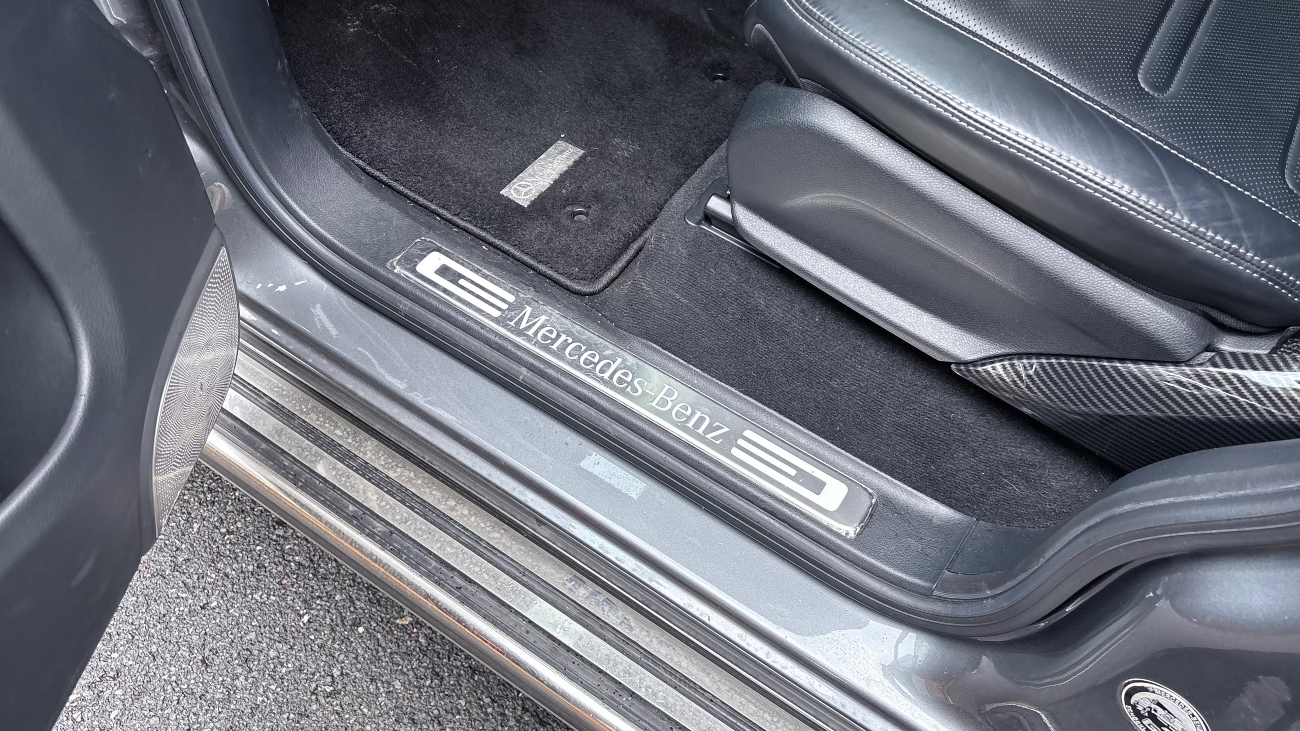 ブラバスのフロントバンパーをはじめ、カーボン調パーツで内外装が統一されており、全体の完成度が高くまとまりの良い一台です。さらに可変バルブ付きマフラーにより走行シーンに応じたサウンドの変化も楽しめるなど、見た目だけでなく“所有する楽しさ”にもこだわった仕様が魅力となっています。加えてサンルーフやBurmesterサウンドなど快適装備も充実しており、そのままでも満足度の高い内容で、機械式駐車場保管という点も含めコンディション重視の方にもご検討いただきやすい車両です。