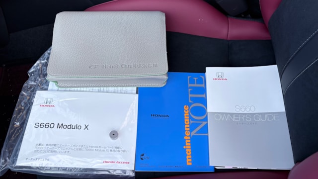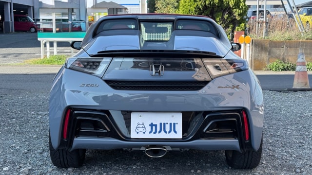 【オプション】 ◎センターディスプレイ ◎バックカメラ ◎純正フロアマット 【Modulo X Version Z専用装備】 ・専用フロントバンパー ・専用アクティブスポイラー ・専用サスペンション(5段階減衰力調整機構付) ・ドリルドディスクローター&スポーツブレーキパッド ・専用スポーツレザーシート ・専用インテリア加飾  ・ブラックエンブレム ・ステルスブラック塗装アルミホイール ・ブラック仕上げの専用アクティブスポイラー ・カーボン調インテリアパネル ・Version Zロゴ入りコンソールプレート  【付属品】 〇モデューロX専用コンソールバッグ ✅S660の集大成!「バージョンZ」! S660 モデューロX バージョンZは、S660の中でも走りの完成度と特別感を高めた集大成ともいえる仕様です。ベースとなるモデューロXは、専用フロントバンパーやアクティブスポイラー、専用サスペンション、ドリルドディスクローター&スポーツブレーキパッドなどが与えられ、標準車とはひと味違うしっかり感のあるハンドリングと高い安定感が魅力です。軽スポーツらしい軽快さを残しつつ、より質の高い走りを味わえる点はこのグレードならではです。 さらにバージョンZでは、ブラックエンブレムやステルスブラック塗装アルミホイール、カーボン調インテリアパネル、専用コンソールプレートなどが採用されており、通常のS660や通常のモデューロXとは異なる最終特別仕様車らしい特別感もしっかり備わっています。見た目だけでなく、所有満足度まで高められた1台です。  ✅ワンオーナーで低走行&状態良好! 本車両は市場でも稀な走行距離300km代と非常に低走行な個体です!ロングドライブや日常使いでは使っていませんが、エンジンの健康のために近所の超短距離の移動で月2~3回ご利用されていたとの事で、低走行ながら安心感がございます。 また、点検・車検はディーラーにて行われてきました! 低走行ということもあり、内外装ともに非常に使用感低く良好な状態が維持されております。 外装は屋根付きの駐車場でカバーを2枚かけて保管し、雨天未走行となるため非常に艶やかで美しいボディコンディションとなっております。 更に使用される際は社外品のフロアマットを敷いてご利用されてきたため、非常に清潔で、オプションのフロアマットも綺麗な状態を保っております! 【車輌状態】 〇外装 目立つキズやへこみなどは見られず、非常に良好な状態が維持されています。 〇内装 シミや破れなどは一切見受けられず、使用感の低い大変良好な状態を保たれています。 禁煙車のため気になる匂いも一切感じられません。