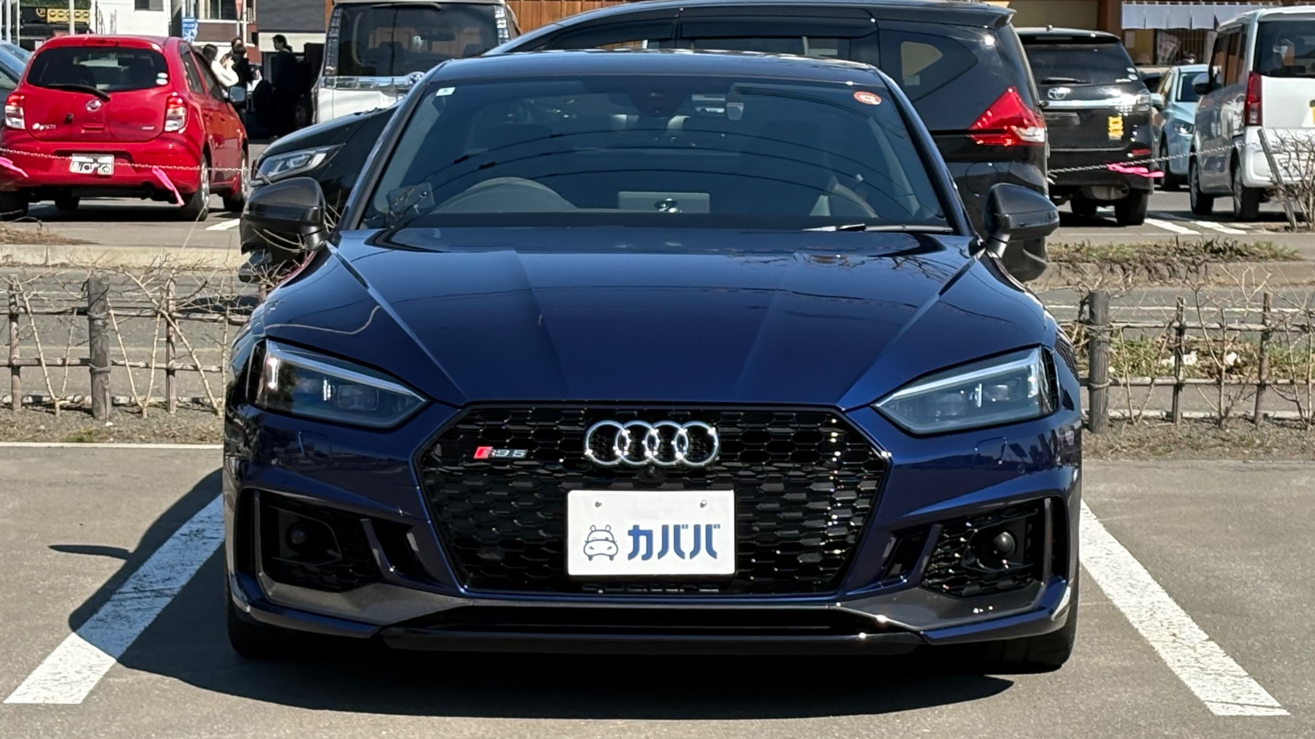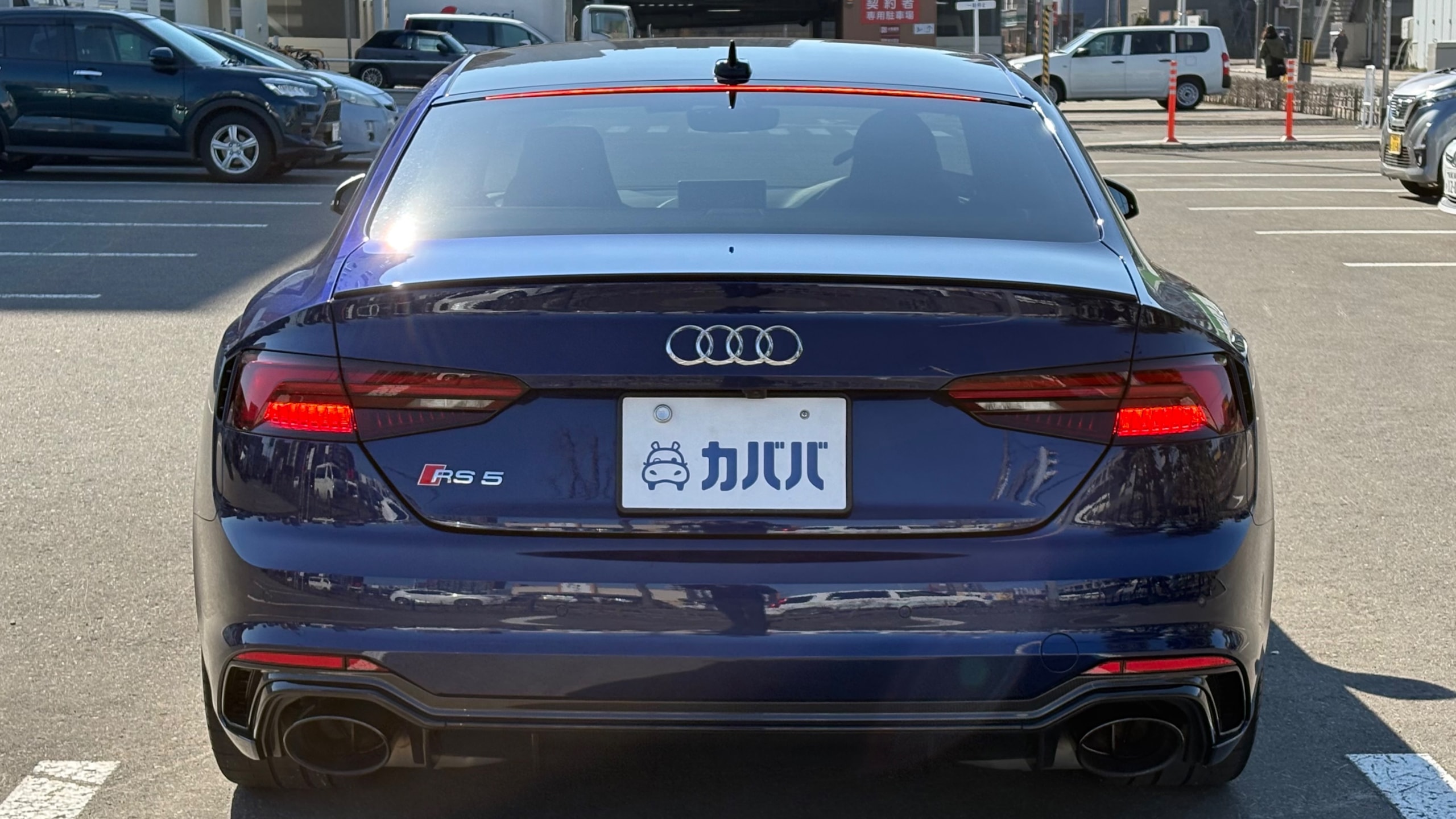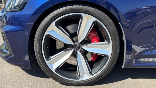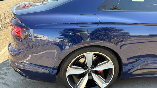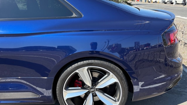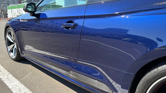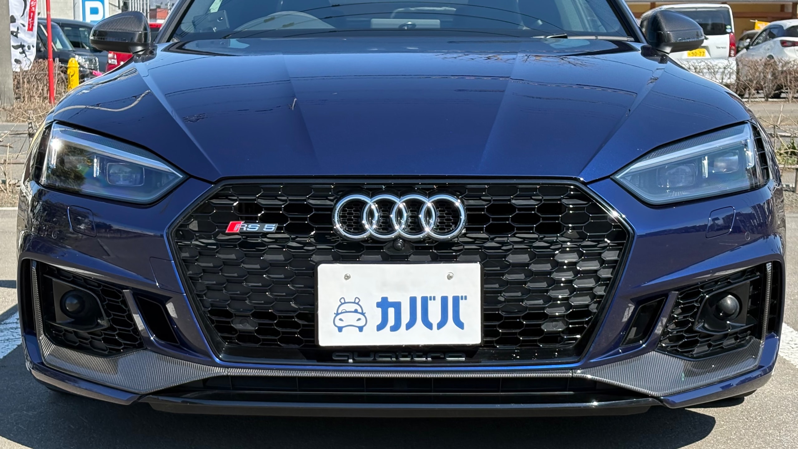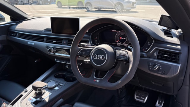 【おすすめ/オプション装備】 ・カーボンルーフ ・カーボンスタイリングパッケージ -カーボンエンジンカバー -エクステリアミラーハウジングカーボン ・カーボントランクスポイラー ・アルカンターラステアリング ・BMC エアフィルター ・前後ドライブレコーダー ・レーダー探知機 ・ETC 【車両標準装備】 ・カラードブレーキキャリパーレッド ・Bang & Olufsen 3D アドバンストサウンドシステム ・Sスポーツシート(フロント) ・リアビューカメラ ・アダプティブクルーズコントロール ※取説・記録簿・スペアキーあり ○モデルの特徴 2018年式アウディRS5は、アウディの高性能部門「RS」が手掛けるハイパフォーマンスクーペで、先代の自然吸気V8から2.9L V6ツインターボへと刷新されたモデルです。最高出力450馬力・最大トルク600Nmを発揮し。それでいてquattro(フルタイム4WD)による高い安定性も備えており、あらゆるシーンで安心して走行が可能です。さらに、バーチャルコックピットをはじめとした先進的なインテリアや高い静粛性など、日常使いにも配慮された快適性も魅力のひとつ。スポーツ性能と実用性を高次元で両立した、完成度の高い1台です。 ○セールスポイント 本車両は、市場でも希少なカーボンルーフをオプション装備した、他とは一線を画す1台です。軽量化による走行性能へのメリットに加え、ルーフまでカーボンが入ることで、見た目の特別感も大きく高められています。 さらに、カーボンスタイリングパッケージによりドアミラーやエンジンカバーがカーボンで統一されており、細部まで抜かりない仕上がり。 加えて、アルカンターラステアリングも備わっており、見た目の雰囲気だけでなく、握った際の質感やドライビングの高揚感にも直結するポイントです。 ここまで装備が揃った個体は流通も少なく、「普通のRS5では物足りない」という方にはまさに刺さる仕様。ぜひこの機会にご検討ください! 【車両状態】 ■ガラスのキズ・状態 軽微な飛び石傷はありますが、車検に影響のある大きな破損なし。 ■外装 ・フロントバンパー下擦り ・サイドステップに擦り傷 ・ボンネットに飛び石 ・リアバンパーに融雪剤の付着 その他年式距離相応の軽微な線傷や小傷がございます。 ■エンジン音と振動 取材時のアイドリングは非常に安定しており、異音や不自然な振動は確認取れませんでした。 ■内装 ・シートに軽微なスレ/シワ ・ステアリングに軽微なテカリ 大きな傷等もなく、全体的には非常に綺麗な状態を維持しています。 ■車内・エアコンのニオイ 清潔感のある車内を維持しており、タバコ臭・ペット臭など、不快なニオイは一切確認できませんでした。 【タイヤについて】 オーナー様のこだわりにより、ピレリ Pゼロコルサのワイドタイヤが装着されております。これにより見た目の迫力やグリップ性能の向上が感じられる仕様となっております。 一方で、ハンドルを大きく(約180度)切った際に、タイヤが干渉し音が発生する場合があるとのことです。走行に支障はございませんが、上記点についてご理解のうえご検討ください。 《重要》購入前にご確認をよろしくお願いします。 ※サイト記載のないオーナー様の私物は外してのお渡しになりますので、ご了承ください。 ※本車両は8年以上前の車両の為、ノークレームノーリターンのお取引となります。予めご了承ください。また、本車両に対する予防整備(消耗品等)の不具合、劣化等に関しては免責事項となります。