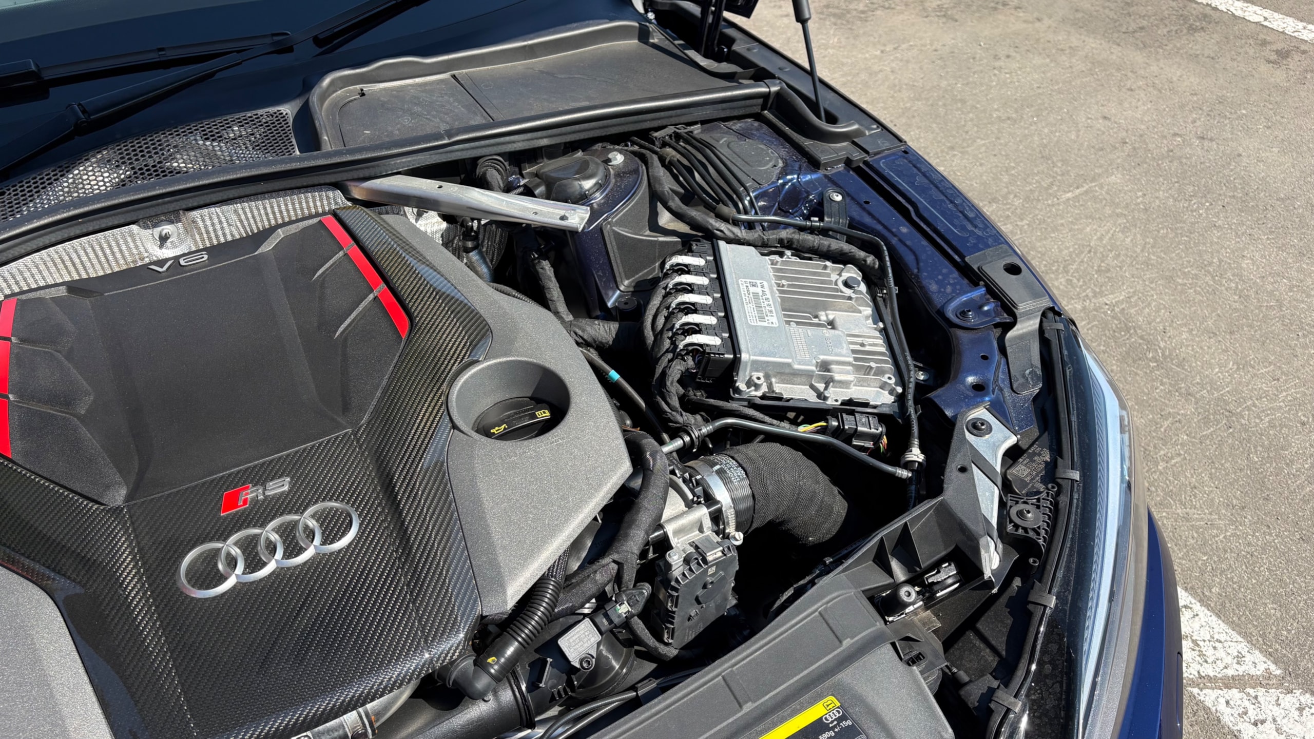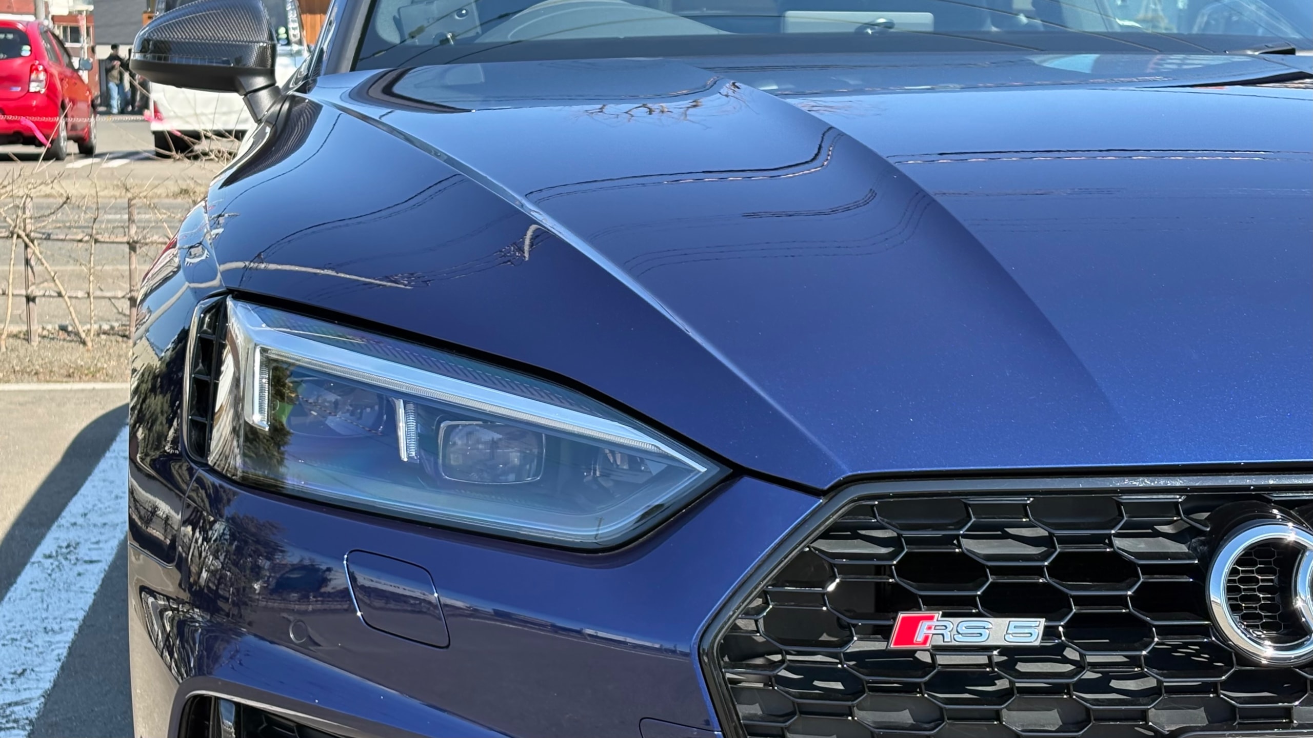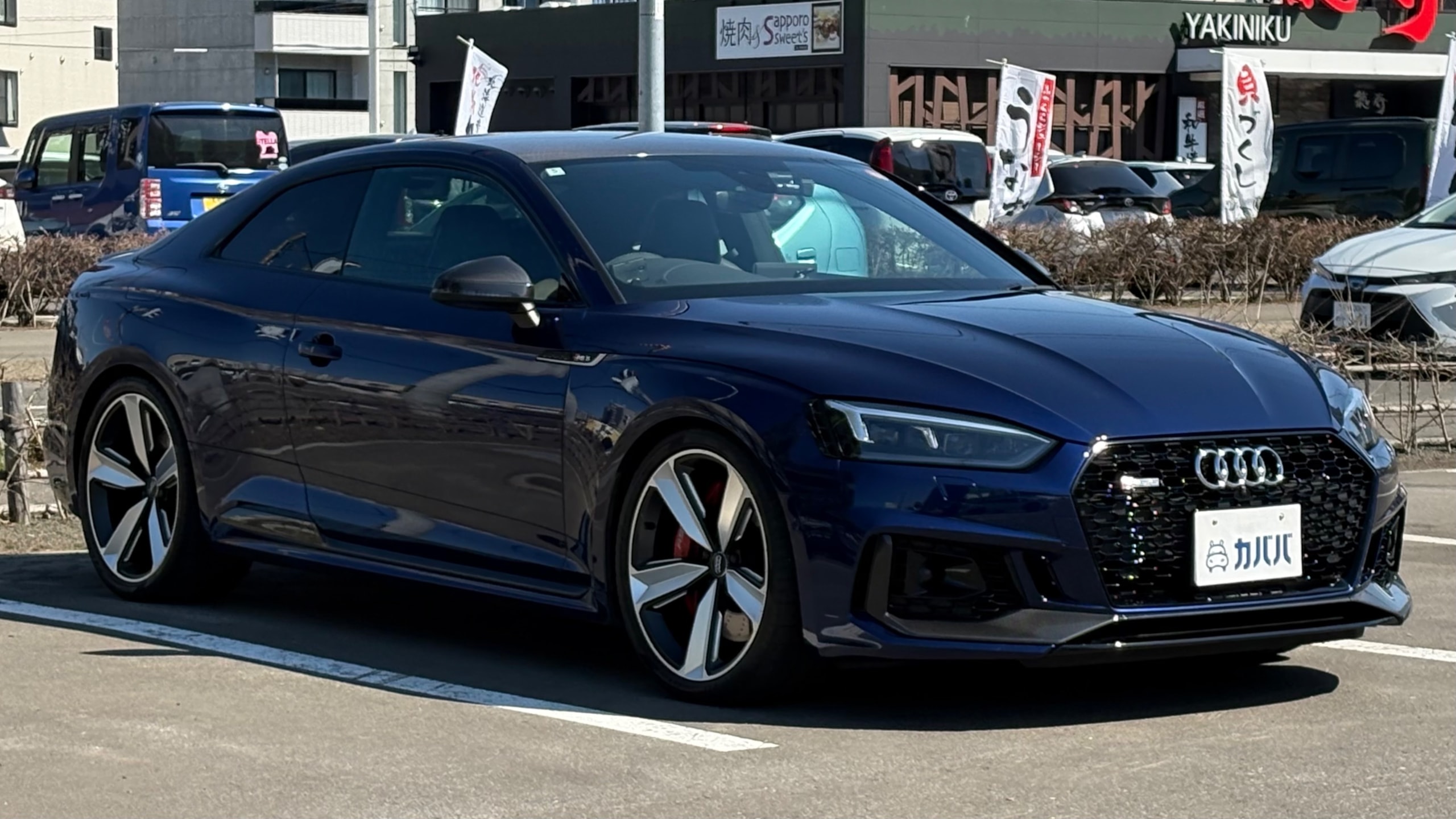 【おすすめ/オプション装備】 ・カーボンルーフ ・カーボンスタイリングパッケージ -カーボンエンジンカバー -エクステリアミラーハウジングカーボン ・カーボントランクスポイラー ・アルカンターラステアリング ・BMC エアフィルター ・前後ドライブレコーダー ・レーダー探知機 ・ETC 【車両標準装備】 ・カラードブレーキキャリパーレッド ・Bang & Olufsen 3D アドバンストサウンドシステム ・Sスポーツシート(フロント) ・リアビューカメラ ・アダプティブクルーズコントロール ※取説・記録簿・スペアキーあり ○モデルの特徴 2018年式アウディRS5は、アウディの高性能部門「RS」が手掛けるハイパフォーマンスクーペで、先代の自然吸気V8から2.9L V6ツインターボへと刷新されたモデルです。最高出力450馬力・最大トルク600Nmを発揮し。それでいてquattro(フルタイム4WD)による高い安定性も備えており、あらゆるシーンで安心して走行が可能です。さらに、バーチャルコックピットをはじめとした先進的なインテリアや高い静粛性など、日常使いにも配慮された快適性も魅力のひとつ。スポーツ性能と実用性を高次元で両立した、完成度の高い1台です。 ○セールスポイント 本車両は、市場でも希少なカーボンルーフをオプション装備した、他とは一線を画す1台です。軽量化による走行性能へのメリットに加え、ルーフまでカーボンが入ることで、見た目の特別感も大きく高められています。 さらに、カーボンスタイリングパッケージによりドアミラーやエンジンカバーがカーボンで統一されており、細部まで抜かりない仕上がり。 加えて、アルカンターラステアリングも備わっており、見た目の雰囲気だけでなく、握った際の質感やドライビングの高揚感にも直結するポイントです。 ここまで装備が揃った個体は流通も少なく、「普通のRS5では物足りない」という方にはまさに刺さる仕様。ぜひこの機会にご検討ください! 【車両状態】 ■ガラスのキズ・状態 軽微な飛び石傷はありますが、車検に影響のある大きな破損なし。 ■外装 ・フロントバンパー下擦り ・サイドステップに擦り傷 ・ボンネットに飛び石 ・リアバンパーに融雪剤の付着 その他年式距離相応の軽微な線傷や小傷がございます。 ■エンジン音と振動 取材時のアイドリングは非常に安定しており、異音や不自然な振動は確認取れませんでした。 ■内装 ・シートに軽微なスレ/シワ ・ステアリングに軽微なテカリ 大きな傷等もなく、全体的には非常に綺麗な状態を維持しています。 ■車内・エアコンのニオイ 清潔感のある車内を維持しており、タバコ臭・ペット臭など、不快なニオイは一切確認できませんでした。 【タイヤについて】 オーナー様のこだわりにより、ピレリ Pゼロコルサのワイドタイヤが装着されております。これにより見た目の迫力やグリップ性能の向上が感じられる仕様となっております。 一方で、ハンドルを大きく(約180度)切った際に、タイヤが干渉し音が発生する場合があるとのことです。走行に支障はございませんが、上記点についてご理解のうえご検討ください。 《重要》購入前にご確認をよろしくお願いします。 ※サイト記載のないオーナー様の私物は外してのお渡しになりますので、ご了承ください。 ※本車両は8年以上前の車両の為、ノークレームノーリターンのお取引となります。予めご了承ください。また、本車両に対する予防整備(消耗品等)の不具合、劣化等に関しては免責事項となります。
