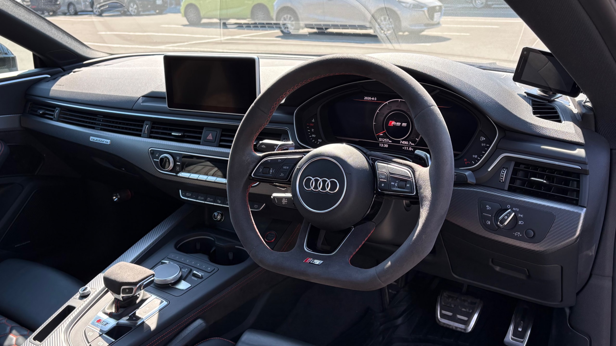 実車を拝見してまず印象的だったのは、カーボンルーフをはじめとした装備の充実度です。RS5自体も流通が限られるモデルですが、その中でもここまでしっかりオプションが揃っている個体は少なく、「同じRS5でもここまで違うのか」と感じさせてくれる1台でした。 アルカンターラステアリングなど運転席に座った際の雰囲気も非常に良く、見た目だけでなく“走りへの期待感”をしっかり高めてくれる仕様です。走行距離こそ伸びているものの、それ以上に装備内容や仕上がりの魅力が上回っており、価格とのバランスを考えても非常に面白い1台だと感じました。 取材担当スタッフ 田邊寛多