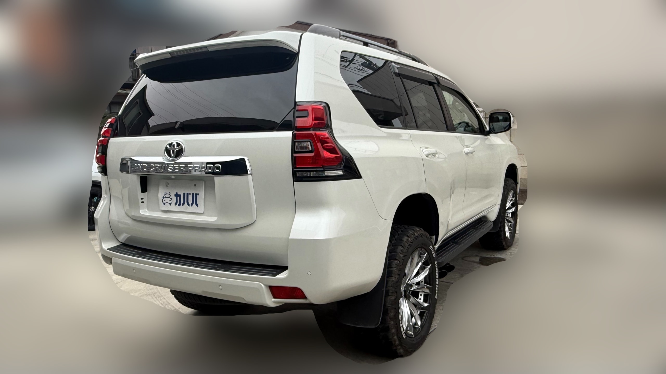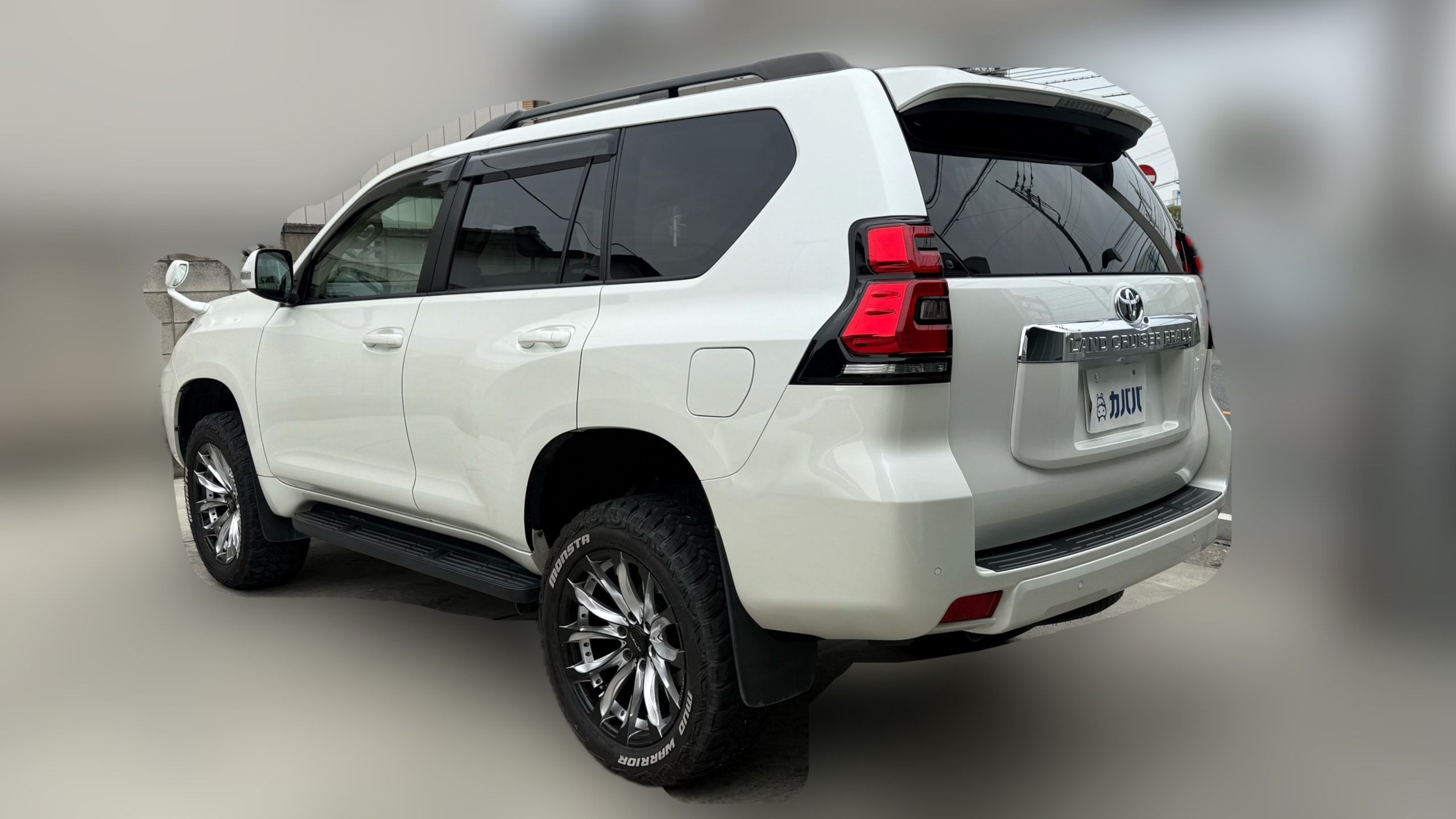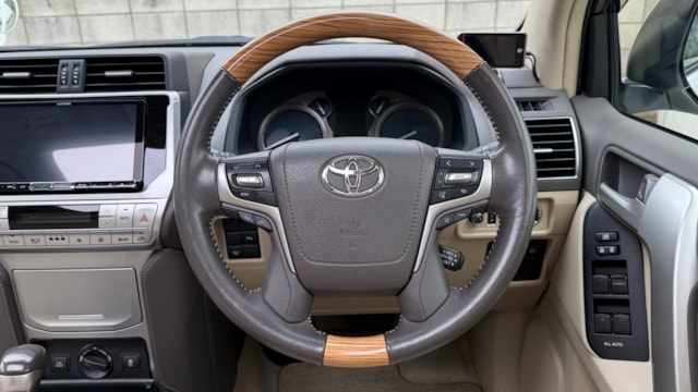 【おすすめ装備】 ○外装カスタム ・社外3眼ヘッドライト(シーケンシャルウインカー) ※純正配線を残したまま配線引き直し済み ・社外フロントグリル ・サイド2本出しマフラー ・DOUBLE EIGHT テール(ブラック) ・LEDフォグライト(シーケンシャルウインカー) ・ナンバー灯LED/バック灯LED ・コーティング施工(G’ZOX Hi-MOHS COAT) ▶ 足回り・ホイール ・2インチリフトアップ ・タイヤ:MONSTA MUD WARRIOR(275/55R20) ・ホイール:WALD JARRET 9.5J 20インチ ※メーカーオーダーカラー ○内装カスタム(オーディオ中心) ・9インチメモリーナビ(CD/DVD/HDMI/Bluetooth/TV) ・フロントスピーカー:FOCAL ES165 KX2 ・リアスピーカー:FOCAL PC165 FE ・アンプ:ロックフォード T600-4 ※配線は純正から引き直し済み ・ドア4枚デッドニング施工 ○オプション ・電動サンルーフ ・パワーシート(1列目) ・シートヒーター/シートクーラー(1列目) ・電動シート(3列目) ・クルーズコントロール ・クリアランスソナー(前後) ・バックカメラ ・ETC ・ドライブレコーダー ○その他 ・ウッドステアリング ・室内灯LED ・セーフティレーダー(TZ-R101) ・トランクマット ※下記純正品は保管がございますので、ご入用の方はお問い合わせの際にご相談ください。 ・マフラー ・ヘッドライト ・グリル 【車両紹介】 2018年式 トヨタ ランドクルーザープラド がカババに登場! 本車両の魅力は、すでに完成されたカスタム内容にあります。 2インチリフトアップにMONSTAタイヤ、さらにWALD製20インチホイールを組み合わせた迫力あるスタイルは、街中でもひと際目を引く存在感を放ちます。 加えて、FOCALスピーカー+ロックフォードアンプによるオーディオ環境を構築。音の解像度・臨場感ともに純正とは一線を画す仕上がりで、ドライブそのものの質を高めてくれます。 TX Lパッケージならではの本革シートやシートヒーター/クーラー、サンルーフなど快適装備も充実しており、「見た目・快適性・音質」のすべてを高次元で両立。 さらに純正パーツも保管されているため、将来的にノーマル戻しも可能です。 ここまで手の入ったプラドは市場でも少なく、“そのまま乗って完成形”を求める方には非常におすすめの一台です。 【車両状態】 ・左フロントフェンダー/ボンネット/右フロントフェンダー/右フロントドア/右リアドア/右リアフェンダー:板金塗装歴あり その他中古車両なので、細かな飛び石や使用感等ございます。 ○気になるポイント‼️ ・車内禁煙車の為特に不快な匂い等ございません! ・エアコン吹き出し口からの匂いも特に問題ございません。 ・本車両、ペット乗車歴のないお車となっておりますので、アレルギーをお持ちの方でもご安心してご乗車いただけます! 【注意事項】 本車両に対する予防整備(消耗品等)の不具合、劣化等に関しては免責事項となります。
