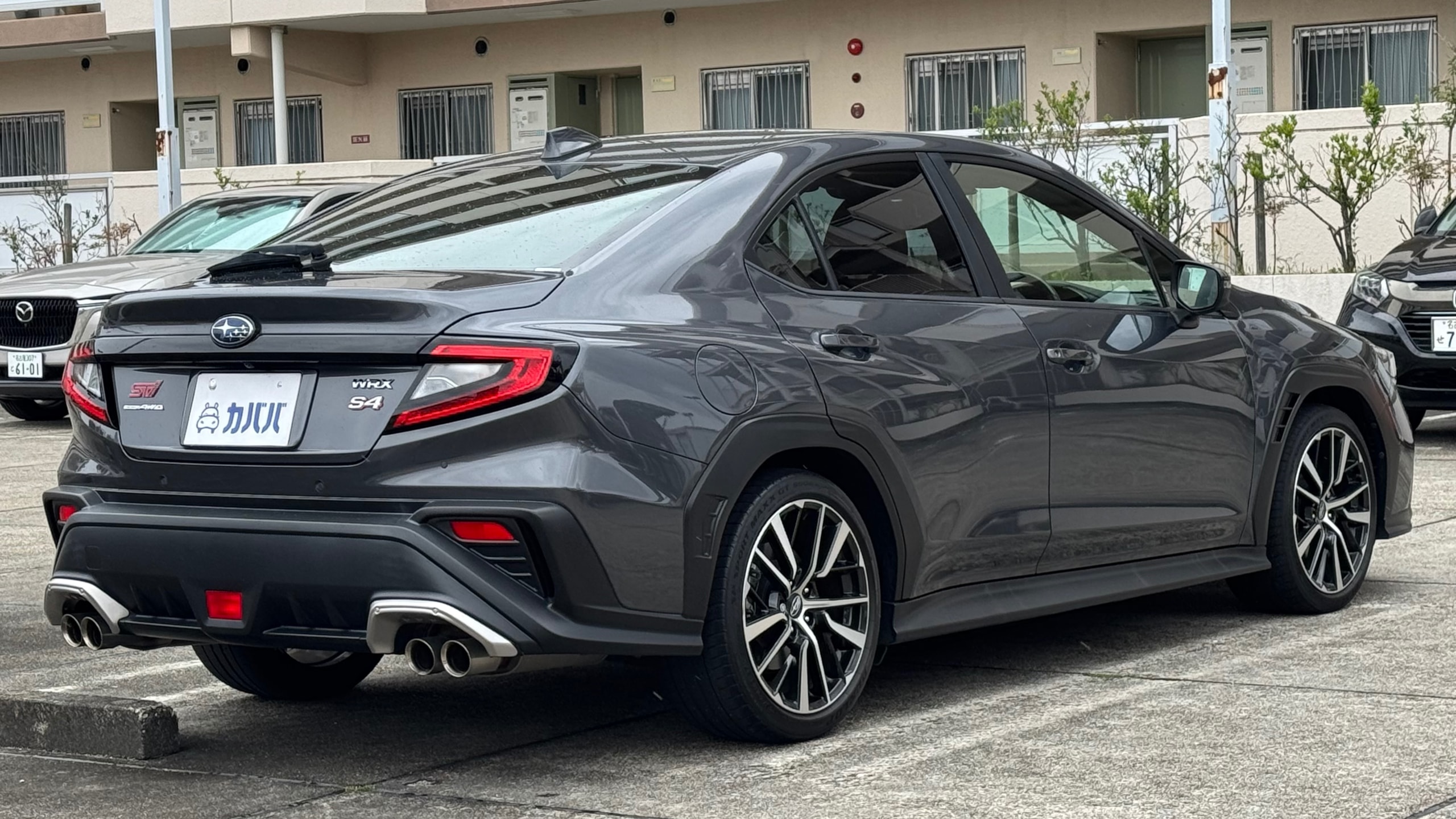 2022年式 スバル WRX S4 STIスポーツR EX 【カタログ値】 ボディタイプ セダン ドア数 4ドア 乗員定員 5名 型式 5BA-VBH 全長×全幅×全高 4670×1825×1465mm ホイールベース 2675mm トレッド前/後 1560/1570mm 室内長×室内幅×室内高 1925×1515×1205mm 車両重量 1600kg エンジン型式 FA24 最高出力 275ps(202kW)/5600rpm 最大トルク 38.2kg・m(375N・m)/2000~4800rpm 種類 水平対向4気筒DOHC16バルブターボ 総排気量 2387cc 内径X行程 94.0mm×86.0mm 圧縮比 10.6 過給機 ターボ 燃料供給装置 筒内直接燃料噴射装置 燃料タンク容量 63リットル 使用燃料 無鉛プレミアムガソリン