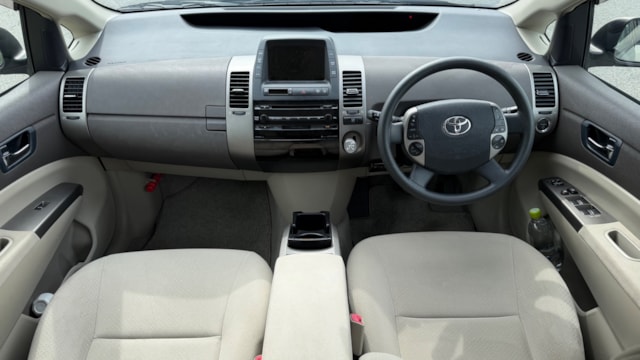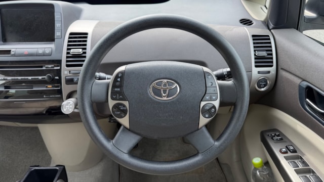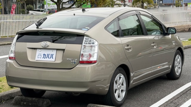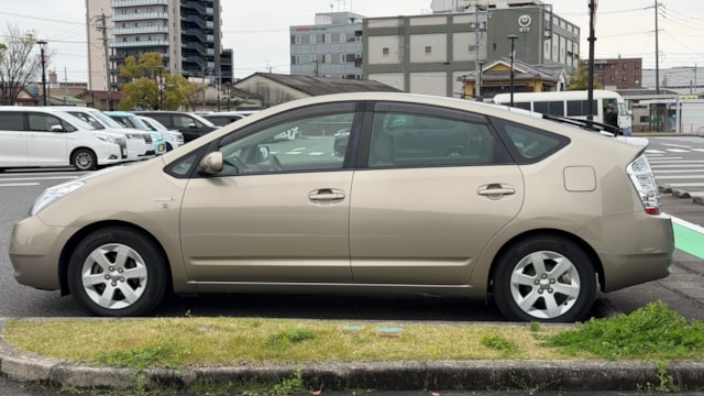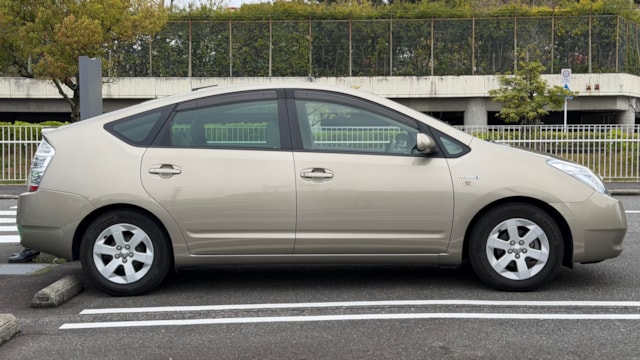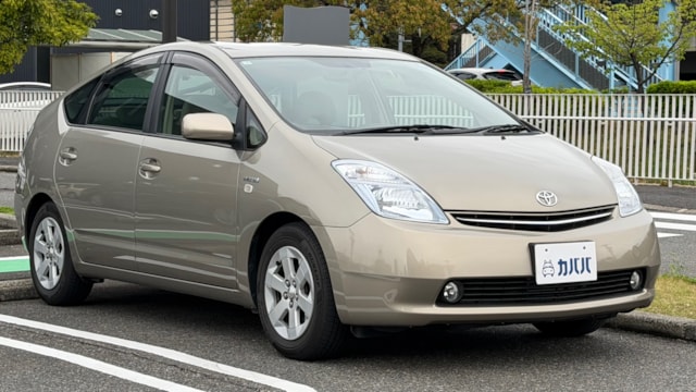 【車両概要】 2007年式 トヨタ プリウス Sがカババに登場です! ハイブリッドカーの先駆けとして高い人気を誇るプリウスは、優れた燃費性能と静粛性を兼ね備え、日常使いから通勤、長距離移動まで幅広いシーンで活躍できる一台です。 本車両のSグレードは、プリウスの中でも装備と価格のバランスに優れたスタンダードグレードに位置付けられており、扱いやすさと実用性をしっかりと両立したモデルです。シンプルな構成ながらもハイブリッドカーとしての基本性能を十分に体感できるため、初めてのハイブリッド車としても選びやすい点が魅力となっており日常使いにおける経済性と信頼性を兼ね備えた一台となっております。 【本車両のここがおすすめ】 まず注目したいのは、流通台数の多いプリウスの中でも比較的珍しいブロンズマイカメタリックのボディカラー。派手すぎず上品な印象で、人と被りにくい点も魅力です。 さらに、前オーナー様が地下駐車場で保管されていた背景もあり、年式を感じさせない良好なコンディションを維持。現オーナー様へと引き継がれてからも大切に扱われてきたことが伝わる一台です。 加えて、昨年末にタイヤを新品交換済みのため、購入後すぐの出費を抑えられるのもポイント。 そしてプリウスで気になることの多いウォーターポンプも昨年夏頃に交換済みと、メンテナンス面でも安心感のある仕上がりとなっています。 【車両状態】 ■ガラスのキズ・状態 軽微な飛び石傷はありますが、車検に影響のある大きな破損なし。 ■外装 フロントまわり飛び石傷、フロントバンパー擦り傷、ホイールガリ傷、サイドミラー傷、ドアエッジキズ、左リアフェンダーにエクボ、左サイドシル擦り傷などがございます。 詳細は動画などを参照ください。 ■エンジン音と振動 取材時のアイドリングは非常に安定しており、異音や不自然な振動は確認取れませんでした。 ■内装 インパネに軽微な小傷、フロアマット汚れ、シートに軽微な汚れが見られます。 ■車内・エアコンのニオイ 清潔感のある車内を維持しており、タバコ臭・ペット臭など、不快なニオイは確認できませんでした。