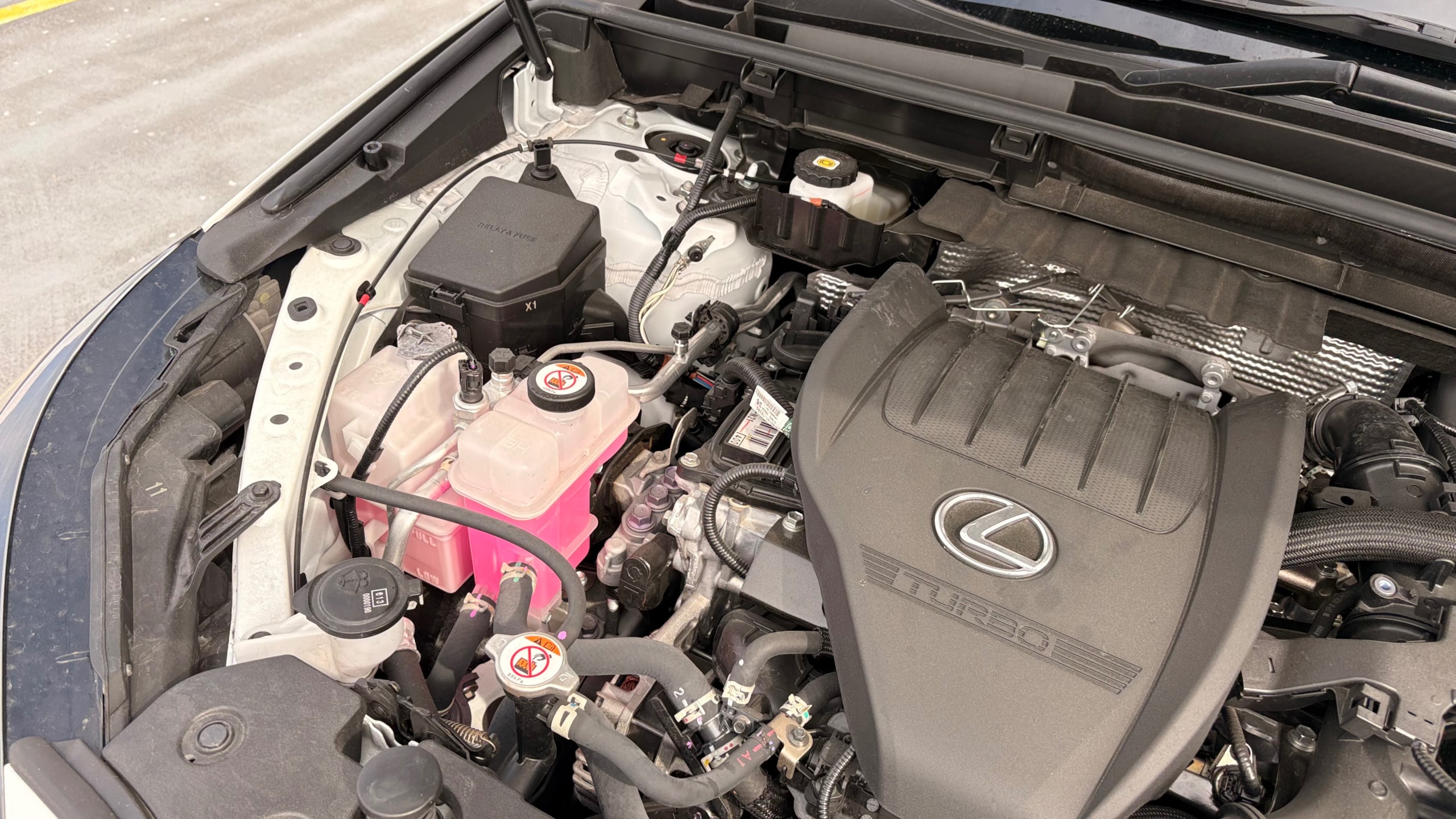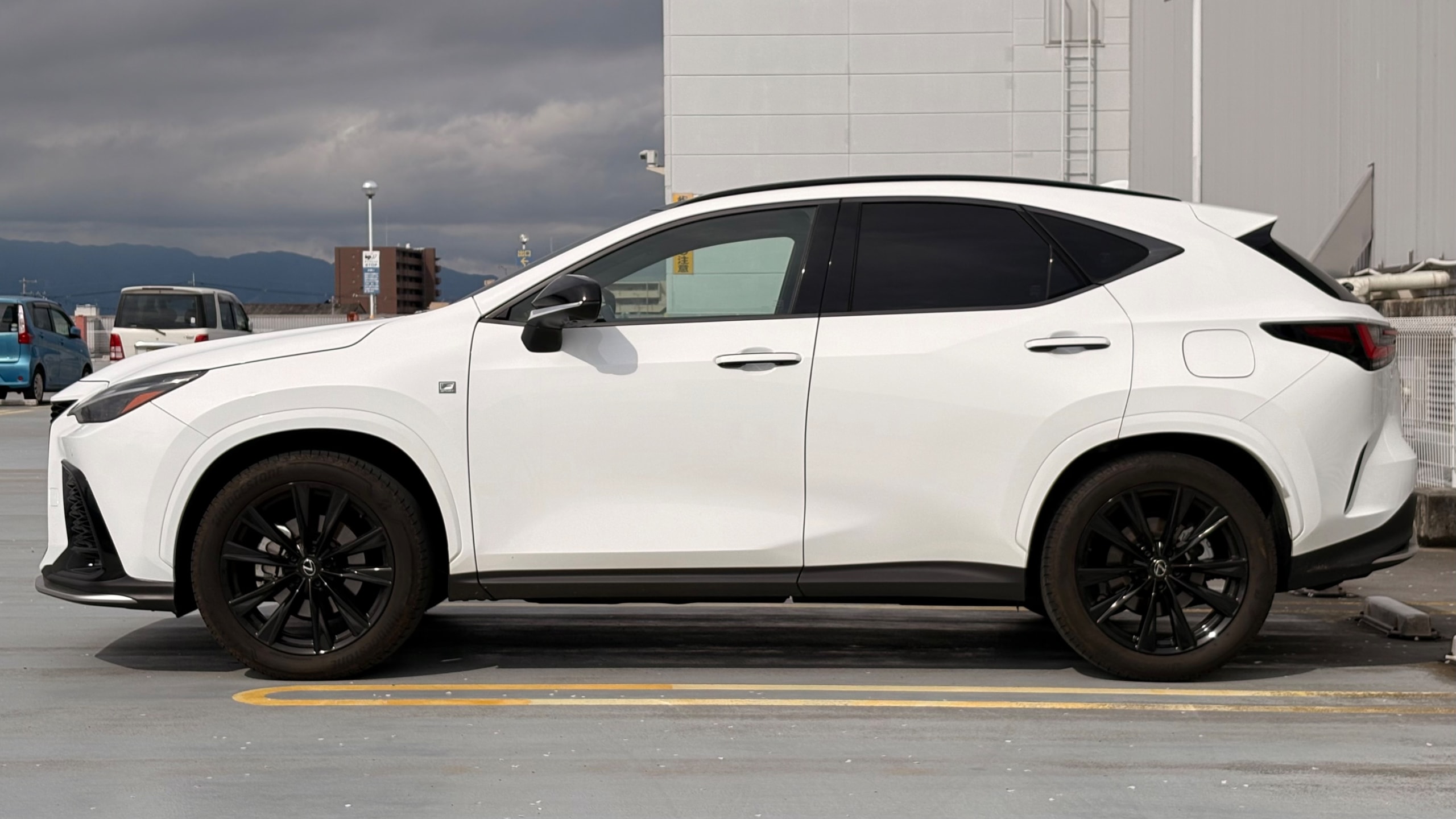 2023年式 レクサス NX350 Fスポーツ ドア数 5ドア 乗員定員 5名 型式 5BA-TAZA25 全長×全幅×全高 4660×1865×1660mm ホイールベース 2690mm トレッド前/後 1605/1625mm 室内長×室内幅×室内高 1805×1520×1195mm 車両重量 1780kg エンジン型式 T24A-FTS 最高出力 279ps(205kW)/6000rpm 最大トルク 43.8kg・m(430N・m)/1700~3600rpm 種類 直列4気筒DOHCICターボ 総排気量 2393cc 内径X行程 87.5mm×99.5mm 過給機 IC付きターボ 燃料供給装置 筒内直接+ポート燃料噴射装置(D-4ST) 燃料タンク容量 55リットル 使用燃料 無鉛プレミアムガソリン