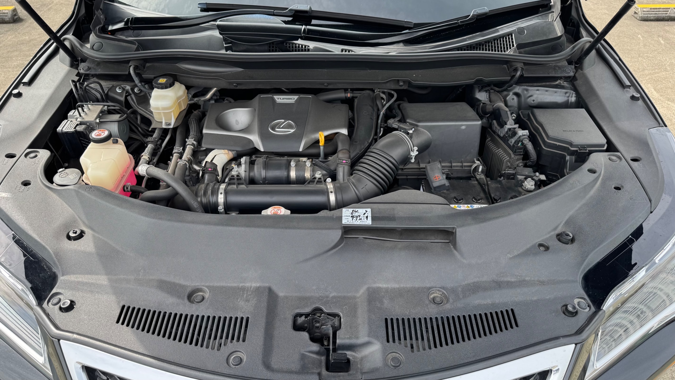 2018年式 RX300 Fスポーツ 【車両情報】 型式 DBA-AGL20W 全長×全幅×全高 4890×1895×1710mm ホイールベース 2790mm トレッド前/後 1640/1630mm 室内長×室内幅×室内高 2230×1590×1200mm 車両重量 1900kg エンジン型式 8AR-FTS 最高出力 238ps(175kW)/4800~5600rpm 最大トルク 35.7kg・m(350N・m)/1650~4000rpm 種類 直列4気筒ICターボ 総排気量 1998cc 内径X行程 86.0mm×86.0mm 過給機 IC付きターボ 燃料供給装置 筒内直接+ポート燃料噴射装置(D-4ST) 燃料タンク容量 72リットル 使用燃料 無鉛プレミアムガソリン