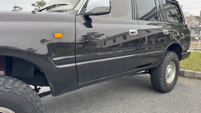 【オススメ装備】 ●革張りルーフ ●カロッツェリアナビ ●ナルディステアリング ●デジタルインナーミラー ドラレコ機能付き ●丸目ヘッドライト ●2インチリフトアップ ●ETC 【車両説明】 1993年式ランドクルーザー80 VXリミテッドは、世界中で高い評価を受け続ける本格クロカンの名車です。堅牢なボディ構造と信頼性の高いエンジンにより、悪路走破性と耐久性は折り紙付き。VXリミテッドならではの上質な内装や快適装備も魅力で、日常使いからアウトドアまで幅広く活躍します。 クラシックSUVとしての存在感と実用性を兼ね備えた、今こそ手にしたい一台です。 【本車両の魅力】 カロッツェリアナビを搭載し、使い勝手の良い快適なドライブ環境を実現。さらにナルディステアリングが装着されており、クラシックSUVの雰囲気を一層引き立てつつ、運転する楽しさも高めてくれます。加えてルーフは革張り仕様となっており、経年による味わいがプラスされた唯一無二の存在感が魅力です。細部までこだわりが感じられる、雰囲気抜群の一台となっております! 気になった方は是非この機会にご検討くださいませ! 【整備履歴】 ・R5年10月 12ヶ月点検(151529km時) ・R6年8月 ラジエーターASSY交換 ・R6年9月 12ヶ月点検(161029km時) ・R7年9月 12ヶ月点検(165592km時) 【車両状態】 ●外装 ・ボディ各所に小傷や色褪せ ・両Fフェンダー、バックドア交換 ●内装 ・ダッシュボードに割れ ・Fシートクッション下にシミ汚れ ・運転席シートに破れ ・天張に擦れや汚れ見受けられました。 匂いに関しては禁煙車として利用しておりますので不快な匂いは確認できませんでした。 ※本車両は10年以上前(10万km以上)の車両のためノークレームノーリターンのお取引となります。予めご了承ください。 また、本車両に対する予防整備(消耗品等)の不具合、劣化等に関しては免責事項となります。 【重要】⚠️ 所有者様の都合上お車の引き渡しは、6月以降になりますのでご周知の方よろしくお願いします。 お車のクオリティや車内の細かい詳細が気になる方は、お気軽にお問い合わせ下さい!🚗