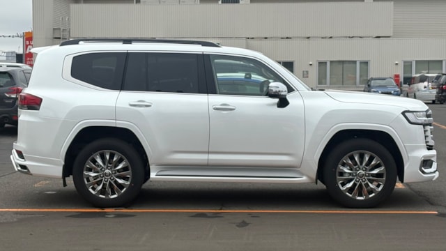 【オプション】 ⚫︎ディスプレイオーディオ(コネクティッドナビ対応+JBL)337,700円 ⚫︎モデリスタ エアロパーツセット(塗装) 255,200円 ⚫︎リヤエンターテインメントシステム 174,900円 ⚫︎クールボックス 71,500円 ⚫︎プレシャスホワイトパール 55,000円 ⚫︎ETC2.0ユニット(光ビーコン付き) 33,000円 ⚫︎ルーフレール(ブラック) 33,000円 ⚫︎ITS Connect 27,500円 ⚫︎モデルの特徴 トヨタを代表するSUV、トヨタ ランドクルーザーは、その圧倒的な走破性と高い信頼性から長年愛され続け、国産SUVの象徴的存在として確固たる地位を築いてきました。 本モデルである300シリーズは、長年培われてきた技術に最新技術を融合することで誕生しました。完全新設計のエンジンを採用したことで走行性能が大幅に向上し、さらに200シリーズと比較して約200kgの軽量化とボディ剛性の向上を実現しています。 また、クラス随一の快適性も大きな魅力です。力強いパワーを持ちながらも高い静粛性を確保しており、最上級クラスならではのラグジュアリーな乗り心地をお楽しみいただけます。 本車両は最上級グレードである「ZX」。専用エクステリアに加え、上質な本革シートやシートヒーター・ベンチレーション機能を備え、さらなる高級感と快適性が追求された一台となっております。 ⚫︎セールスポイント 本車両は、充実したメーカーオプションを多数搭載し、快適性・利便性・デザイン性のすべてを高次元で兼ね備えた魅力的な一台です。 ディスプレイオーディオにより、高音質なサウンドと先進的なナビ機能をお楽しみいただけるほか、リヤエンターテインメントシステムも装備されているため、同乗者にも快適な移動時間を提供します。さらにクールボックスを備えており、ロングドライブやレジャーシーンでも実用性の高さが際立ちます。 外観面では、モデリスタのエアロパーツを装着することで、より洗練された迫力あるスタイリングに仕上がっております。加えて、人気カラーのプレシャスホワイトパールが採用されており、高級感とリセール面でも魅力的なポイントです。ルーフレールも装備されているため、アウトドア用途にも対応可能です。 そのほか、ETC2.0ユニットやITS Connectといった先進装備も搭載されており、安全性や利便性の面でも抜かりのない仕様となっております。ご興味お持ちの方はお気軽にお問い合わせください。 ⚫︎車両状態 内外装ともに良好な状態となっておりますが、中古車である点を踏まえた上でご検討いただければと思います。 【新車保証継承可能】 最寄りの正規ディーラーにて12ヶ月点検相当の法定点検(有償)を実施することにより、新車保証も継承可能なため個人売買ながらも安心してご購入いただけます。