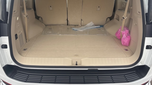 2026年式 トヨタ ランドクルーザー300 ZX 【カタログ値】 ボディタイプ SUV・クロスカントリー・ライトクロカン ドア数 5ドア 乗員定員 7名 型式 3BA-VJA300W 全長×全幅×全高 4985×1980×1925mm ホイールベース 2850mm トレッド前/後 1665/1665mm 室内長×室内幅×室内高 2755×1640×1190mm 車両重量 2500kg エンジン型式 V35A-FTS 最高出力 415ps(305kW)/5200rpm 最大トルク 66.3kg・m(650N・m)/2000~3600rpm 種類 V型6気筒ICツインターボ 総排気量 3444cc 内径X行程 85.5mm×100.0mm 圧縮比 ---- 過給機 IC付きツインターボ 燃料供給装置 EFI(電子制御式燃料噴射装置) 燃料タンク容量 80リットル 使用燃料 無鉛プレミアムガソリン