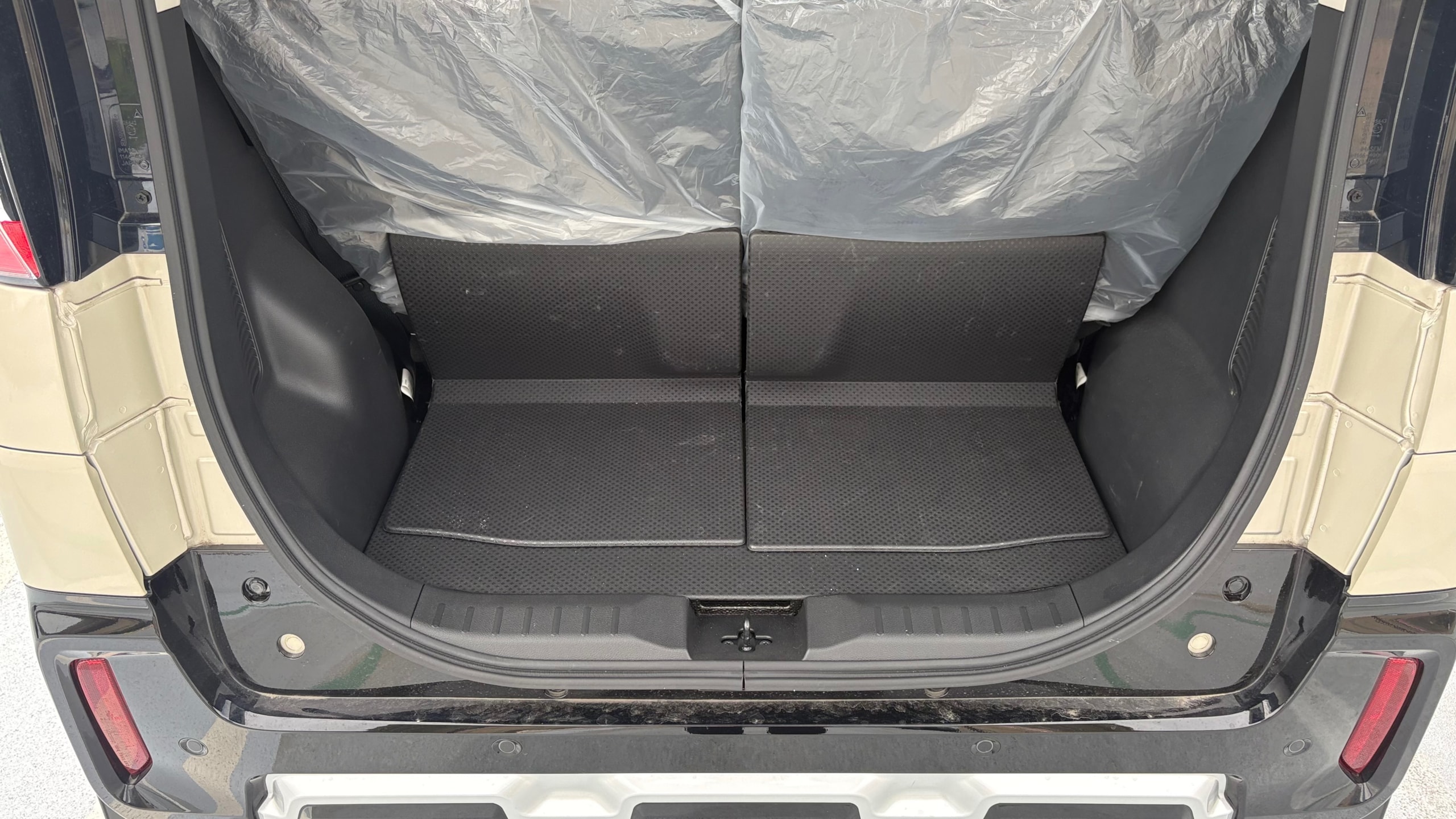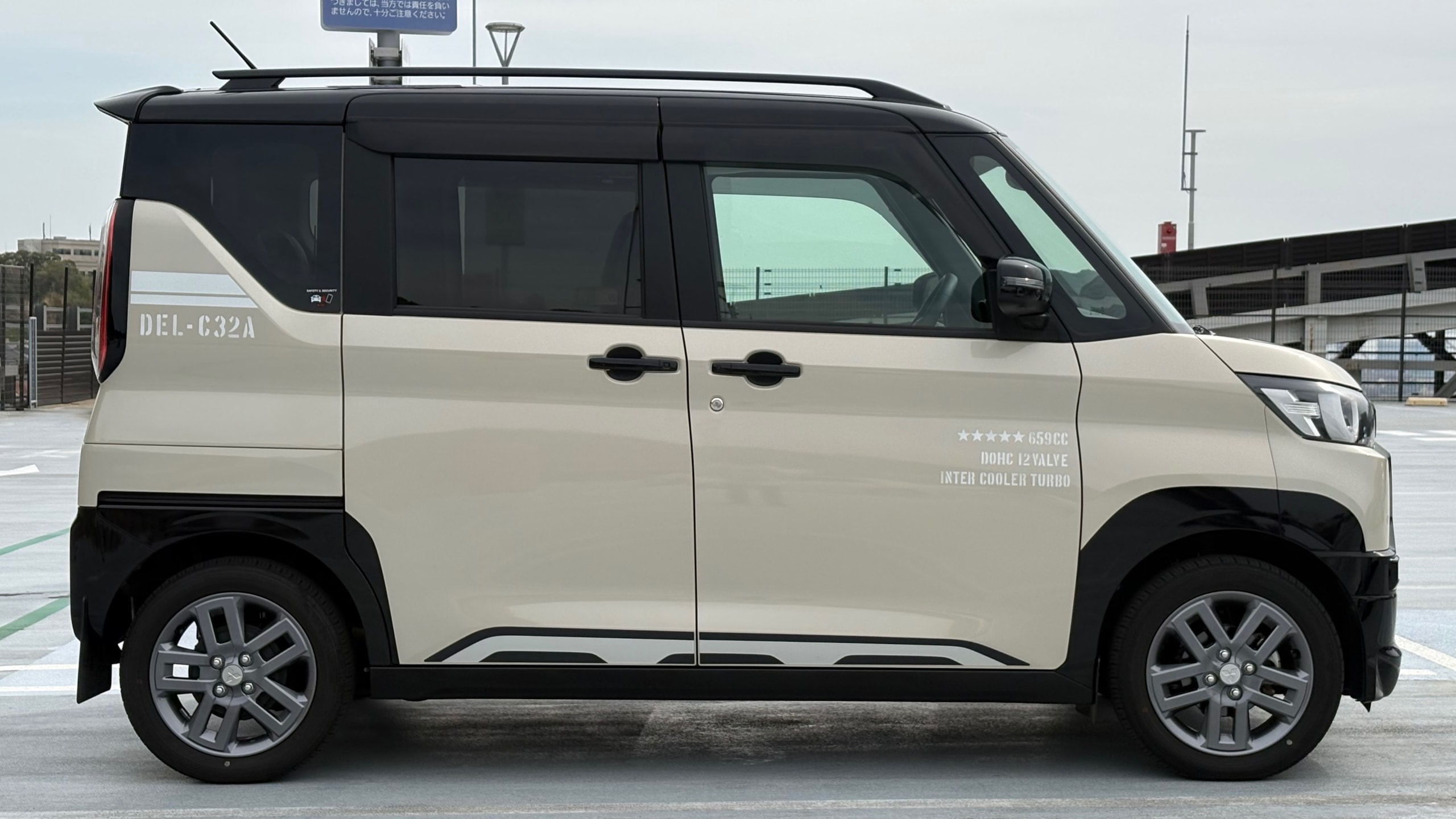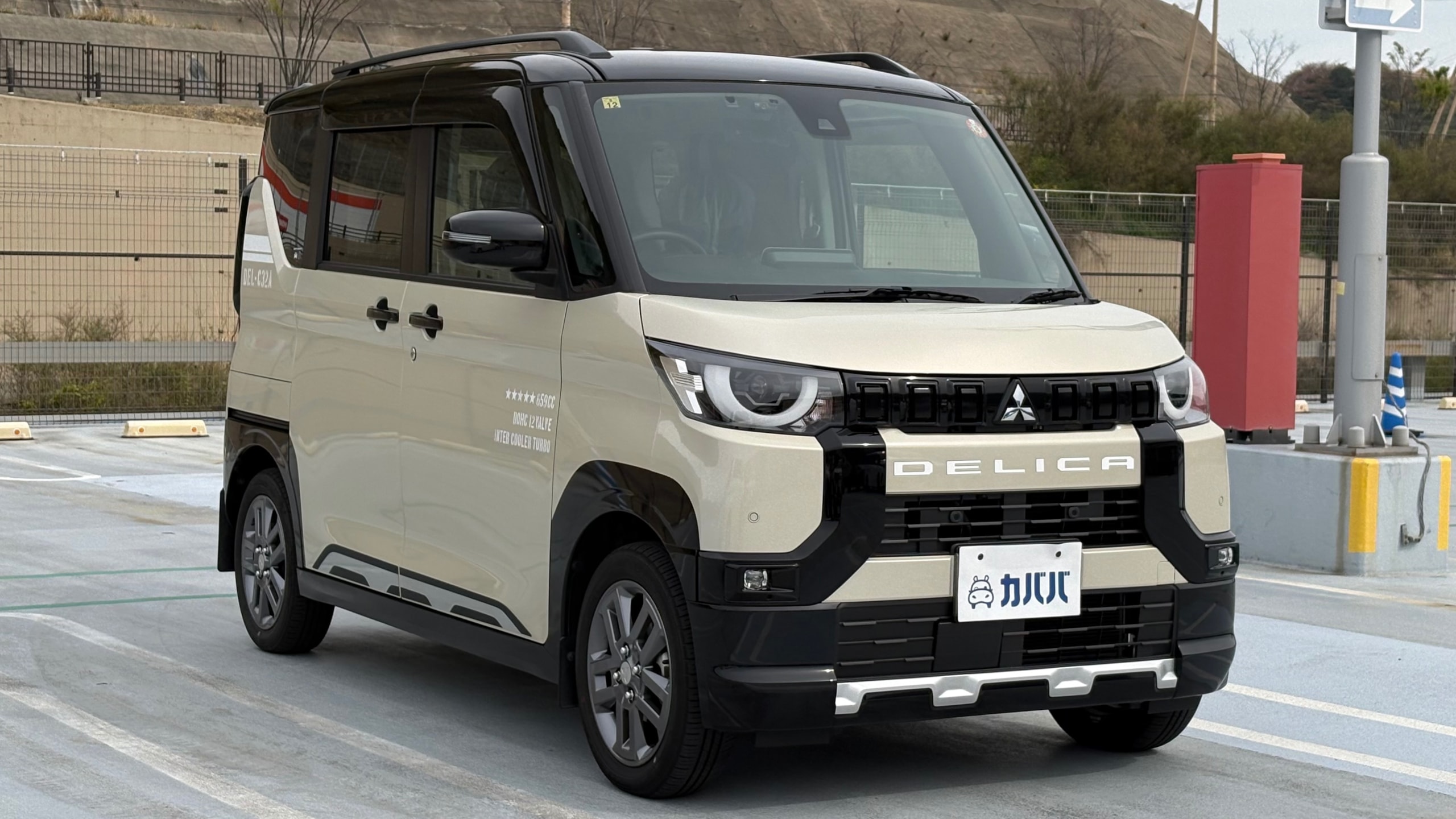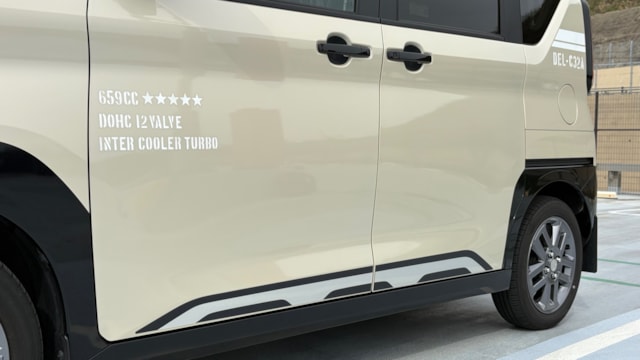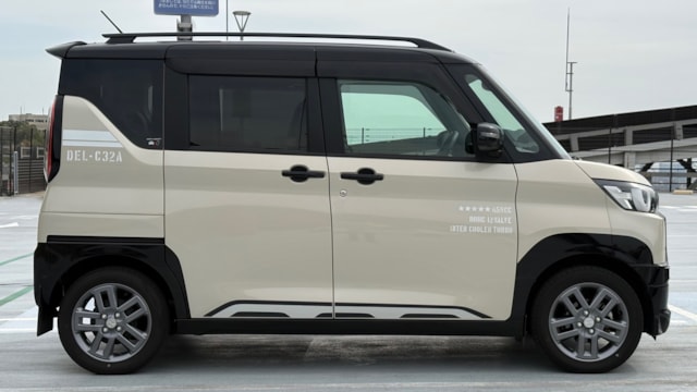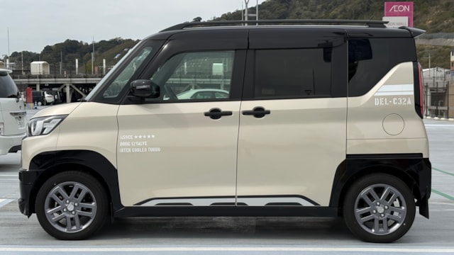 2023年式 三菱 デリカミニ Tプレミアム 4WD ドア数 5ドア 乗員定員 4名 型式 4AA-B38A 全長×全幅×全高 3395×1475×1830mm ホイールベース 2495mm トレッド前/後 1300/1290mm 室内長×室内幅×室内高 2200×1335×1390mm 車両重量 1060kg エンジン型式 BR06 最高出力 64ps(47kW)/5600rpm 最大トルク 10.2kg・m(100N・m)/2400~4000rpm 種類 3気筒DOHC12バルブICターボ+モーター 総排気量 659cc 内径X行程 62.7mm×71.2mm 圧縮比 9.2 過給機 IC付きターボ 燃料供給装置 電子式 燃料タンク容量 27リットル 使用燃料 無鉛レギュラーガソリン