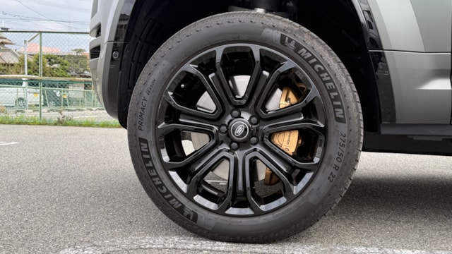 型式 7AA-LE7449AD ボディタイプ SUV・クロスカントリー・ライトクロカン 全長×全幅×全高 4940×2065×2000mm ホイールベース 3020mm トレッド前/後 1700/1760mm ドア数 5ドア 乗車定員 5名 車両重量 2510kg 最高出力 635ps(467kW)/6000〜7000rpm 最大トルク 76.5kg・m(750N・m)/1800〜5855rpm 種類 V型8気筒DOHCツインターボSチャージャー+モーター 排気量 4394cc 過給機 ターボ+Sチャージャー 燃料タンク容量 90リットル 使用燃料 無鉛プレミアムガソリン