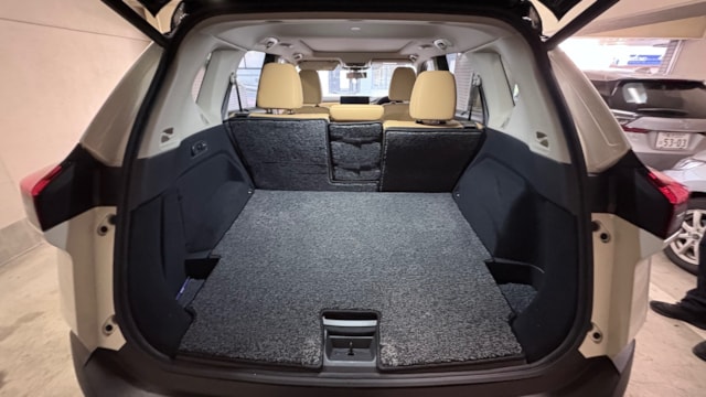 【カタログ値】 ボディタイプ SUV・クロスカントリー・ライトクロカン ドア数 5ドア 乗員定員 5名 型式 6AA-SNT33 全長×全幅×全高 4660×1840×1720mm ホイールベース 2705mm トレッド前/後 1585/1590mm 室内長×室内幅×室内高 1990×1540×1255mm 車両重量 1880kg エンジン型式 KR15DDT 最高出力 144ps(106kW)/4400~5000rpm 最大トルク 25.5kg・m(250N・m)/2400~4000rpm 種類 水冷直列3気筒DOHCターボ+モーター 総排気量 1497cc 内径X行程 84.0mm×90.1mm 圧縮比 ---- 過給機 ターボ 燃料供給装置 ニッサンDi 燃料タンク容量 55リットル 使用燃料 無鉛レギュラーガソリン