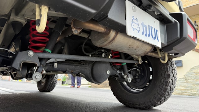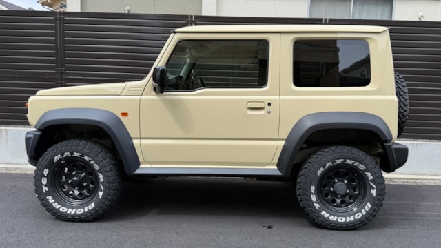 【カスタム装備】 ◎リフトアップ ◎BIGHORNMAXXIS M/Tタイヤ ◎LITTLEiDロゴ ◎ETC ◎ドライブレコーダー 【車両装備】 ◎レーンキーピングアシスト ◎衝突軽減ブレーキ ◎シートヒーター ◎ナビゲーション 【車両説明】 2021年式スズキジムニーJLがカババに登場です!! 本車両は無骨でクラシック、それでいて本格クロカン性能を持つ一台、ジムニーシエラです! ⚫︎エクステリア ベージュ系のボディカラーに加えて、クラシックテイストのフロントグリルが装着されており、通常のジムニーシエラよりもレトロで雰囲気のある仕上がりになっています。 さらに、オーバーフェンダーによってワイド感が強調されていて、コンパクトながらもしっかりとした存在感が感じられ足元にはマッドテレーンタイヤが装着されており、ブラックのスチールホイールとの組み合わせで、かなり無骨でアウトドア感の強い印象です。見た目の迫力と走破性の高さが両立されており、街中でもかなり目を引きますし、アウトドアシーンでは間違いなく映える一台です!! ⚫︎インテリア JLグレードは、上級グレードと比べるとシンプルな装備になっていますが、その分「使いやすさ」に特化した設計が特徴です。 シートは汚れに強いファブリック素材が採用されており、アウトドアでの使用にも気を使わずに使えるのがポイントです。ラゲッジスペースも実用性が高く、後席を倒せばフラットな空間が広がるため、キャンプ用品やアウトドアギアも積み込みやすいです。 【🚗おすすめポイント】 ✅ 本格ラダーフレーム+パートタイム4WD → オフロード性能は軽く異次元レベル ✅カスタムベースとして完成度が高い → すでにこの状態なら“即アウトドア仕様” ✅サイズ感がちょうどいい → 日本の道でも扱いやすいのに走破性も最高な一台! 【👤こんな方におすすめ】 ✅キャンプや釣りなどアウトドア好きな方 ✅人と被らない車に乗りたい方 ✅カスタムを楽しみたい方 【車両状態】 ⚫︎外装 Fバンパー/Fガラスに軽微な飛び石、Rバンパー交換、左Rフェンダー板金が見受けられました。 ⚫︎内装 運転席ドア/グローブボックスに小傷が見受けられました。 ⚫︎匂い 取材時嫌な匂いや強い芳香剤の香りは感じられず落ち着きのある清潔感ある匂いが感じられました。