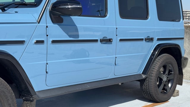 2024年式 Gクラス G400d プロフェッショナルエディション 【車両情報】(カタログ値) ボディタイプ SUV・クロスカントリー・ライトクロカン ドア数 5ドア 乗員定員 5名 型式 3DA-463350 全長×全幅×全高 4660×1930×1975mm ホイールベース 2890mm トレッド前/後 1640/1640mm 室内長×室内幅×室内高 ----×----×----mm 車両重量 2490kg エンジン型式 OM656 最高出力 330ps(243kW)/3600~4200rpm 最大トルク 71.4kg・m(700N・m)/1200~3200rpm 種類 直列6気筒DOHCICターボ (ディーゼル) 総排気量 2924cc 内径X行程 82.0mm×92.3mm 圧縮比 15.5 過給機 IC付きターボ 燃料供給装置 電子制御燃料直接噴射(コモンレール) 燃料タンク容量 100リットル 使用燃料 軽油