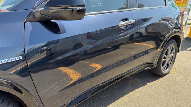 【車両装備】 ・ナビ装着用スペシャルパッケージ+ETC車載器 ・Honda SENSING ・前席用i-サイドエアバッグ+サイドカーテンエアバッグ(前席/後席) ・コンフォートビューパッケージ ・LEDヘッドライト ・LEDフォグライト ・コンビシート(ウルトラスエード) ・運転席/助手席シートヒーター ・18インチアルミホイール ・ドライブレコーダー 【車両説明】 ホンダ ヴェゼルは、コンパクトSUVでありながら広い室内空間と高い実用性を兼ね備えた人気モデルです。 専用デザインによるスポーティな外観と、ハイブリッドならではの低燃費・静粛性が魅力の一台です。 安全装備としてHonda SENSINGを搭載しており、日常の運転からロングドライブまで安心してご利用いただけます。 本車両はRSグレードならではのスポーティな仕上がりを感じられ、専用アルミホイールや内装デザインにより、標準グレードとは一味違うスポーティな雰囲気が魅力です。 また、先進安全装備が標準装備されており、日常使いでも安心してお乗りいただけます。シートヒーターやLEDライト類、コンフォートビューパッケージなど、日常での使い勝手を高める装備がしっかり揃っています。 【車両状態】 ●車内の匂い、エアコンの匂い ペット乗車歴があり、車内に犬の毛が確認されております。取材時、獣臭などの不快な匂いは確認されておりません。 ●ガラス状態 ・フロントガラスに飛び石あり ●メーター周り 取材時、警告灯の点灯は確認されておりません。 ●機関系 エンジン・ハイブリッドシステムともに不具合はなく、問題なくご使用いただけます。 ●外装 ・フロントサイドメンバーに歪み板金塗装 ・ボンネットに凹みを伴う傷 ・フロントバンパー交換歴あり ・フロントバンパーに線傷、飛び石 ・左右ドアミラーにすり傷 ・右フロントフェンダー、右フロント/リアドア、右リアフェンダーに線傷 ・リアバンパーにすり傷 ・バックドアに板金塗装歴あり ・左リアフェンダー、左フロント/リアドアに線傷 ●内装 ・シートにシワ、スレ ・ラゲッジルームにすり傷 ※ステアリングカバー装着のため、ステアリング本体の詳細状態は未確認となります。 ※掲載写真や状態動画もあわせてご確認ください。 【注意事項】 ・お車の引き上げが12/1から設定しております。9/1から12/1まで調整が可能な場合ございますので、事前にお問い合わせください。 ・取材時、社外ホイール+冬タイヤ装着しておりますが、納車時は純正ホイール+夏タイヤにてお渡しいたします。