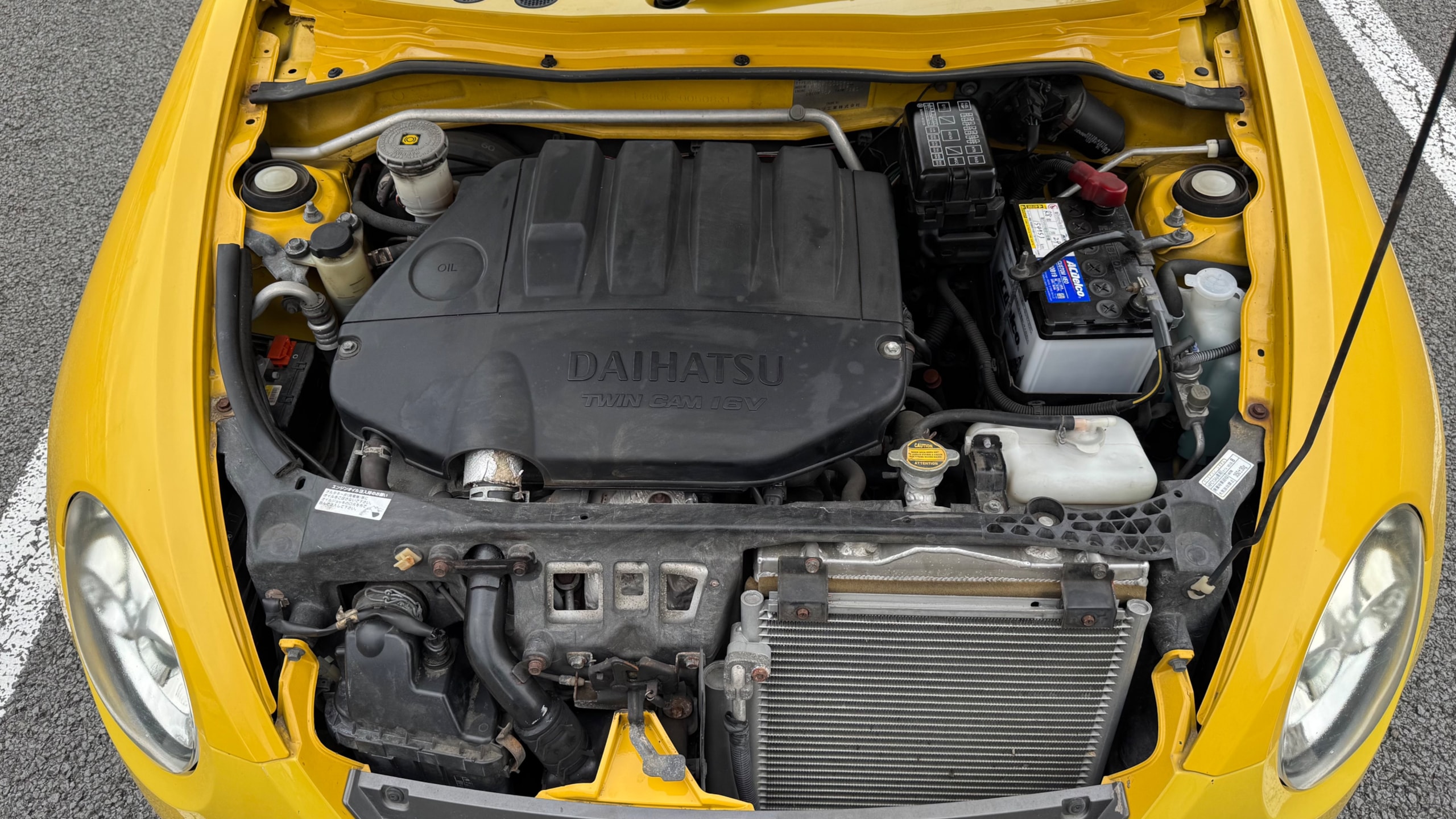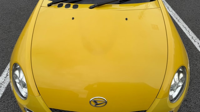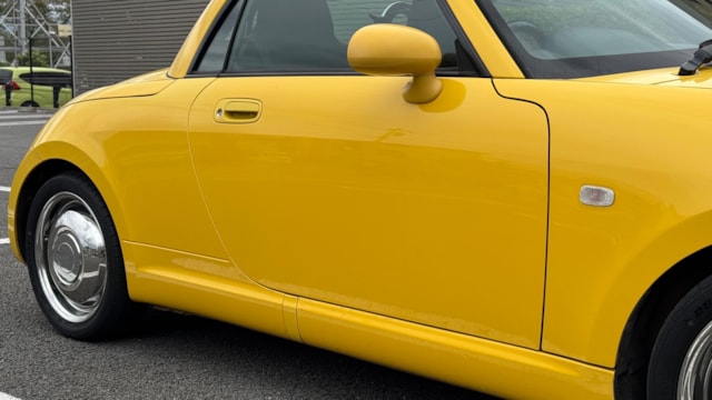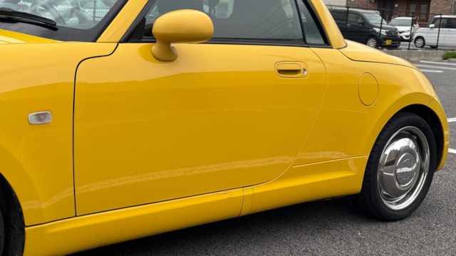 【車両おすすめ装備】 ⚪︎carrozzeriaナビ(地図データ2024/1版) ⚪︎carrozzeriaスピーカー ⚪︎WORKホイール ⚪︎D-SPORT スポーツECU(純正あり) ⚪︎ヘッドライト&ウインカーLED変更(サイドマーカーのみ非LED) ⚪︎アルミラジエーター 【モデル紹介】 名車L880K型コペン、それも熟成の2009年式 アクティブトップのご出品です。 最大の魅力は、現行モデルにはない直列4気筒DOHCターボエンジン「JB-DET」を搭載している点にあります。独特のエンジンサウンドと共に高回転まで滑らかに吹け上がるフィーリングは、この初代コペンでしか味わえない特権です。約20秒でフルオープンになる電動開閉式ルーフも作動良好で、気軽に非日常のドライブへと誘います。 【当車両の魅力】 本車両はECU載せ替えによるパワーアップした馬力を体感できる一台です!開放的なドライブを楽しめるだけでなく、迫力ある走行をお求めの方は必見です。 エクステリアに関しては、鮮やかな色味が特徴の「DCジョーヌイエロー」とWORKホイールが光る唯一無二の仕様です。 2028年2月までと車検有効期限もたっぷり残されておりますので、気になった方は是非ご検討ください! 【メンテナンス】 R4.2 整備工場 車検 (実施内容 : ヘッドカバーパッキン、ウォーターポンプ、サーモスタット、ラジエーター、ファンモーター交換) R4.4 121092km ディーラー 点検 (実施内容 : リアブレーキシュー交換) R4.7 整備工場 点検 (実施内容 : タイミングチェーン、リアエンジンマウント交換) R5.6 整備工場 点検 (実施内容 : エアコンコンプレッサー、コンデンサー交換) R6.2 137550km 整備工場 車検 (実施内容 : ATF全量、オイルストレーナー、純正新品マフラー交換) R8.1 154753km 整備工場 車検 (実施内容 : バッテリー交換) 【車両状態】 ⚪︎外装 ・フロント飛び石/小傷 ・ボンネット/ルーフステッカー剥がし跡 ・フロントバンパー下部擦り傷 ・両ドアエッジ、エッジ付近傷 ・バックドア/リアバンパー小傷 年式相応の小傷は各部見られ、一部タッチペン補修されております。 外板パネルと樹脂パーツで素材の違いによる経年劣化・日焼けの影響が異なるため、色調の違いが見られます。 ⚪︎内装 ・座席サポート部スレ傷み ・幌開閉取手塗装剥がれ ・インナーミラー縁汚れ 上記見られ、各部年式相応の使用感はございます。 においに関しては禁煙車のため気になるものは感じられませんでした。 ⚪︎特記事項 ・エアコンのモーターがカラカラ鳴ることがあります。 ・ペットの乗車歴はございませんが、猫を飼われているため衣服についた毛などが見られる可能性がございます。取材時、気になるレベルではございませんでしたがアレルギーや神経質な方はご理解の上ご検討ください。 ※本車両は10年以上前(10万km以上)の車両のためノークレームノーリターンのお取引となりますので、予めご了承ください。 また本車両に対する予防整備(消耗品等)の不具合、劣化等に関しては免責事項となります。