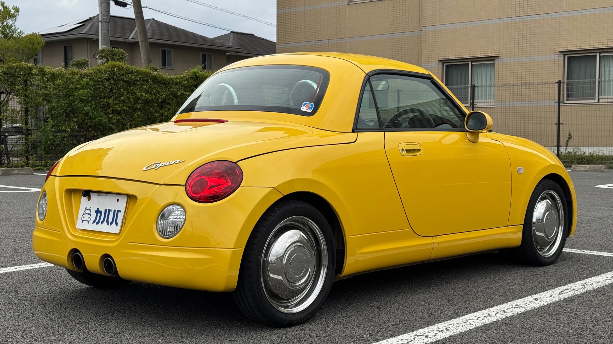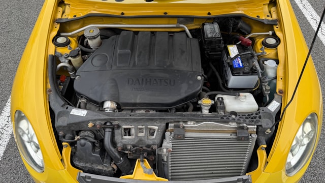 2009年式 コペン アクティブトップ 【車両情報】 ボディタイプ オープン・カブリオレ・コンバーチブル ドア数 2ドア 乗員定員 2名 型式 ABA-L880K 全長×全幅×全高 3395×1475×1245mm ホイールベース 2230mm トレッド前/後 1300/1290mm 室内長×室内幅×室内高 890×1250×1040mm 車両重量 840kg エンジン型式 JB-DET 最高出力 64ps(47kW)/6000rpm 最大トルク 11.2kg・m(110N・m)/3200rpm 種類 水冷直列4気筒DOHC16バルブICターボ 総排気量 659cc 内径X行程 61.0mm×56.4mm 圧縮比 8.2 過給機 IC付きターボ 燃料供給装置 EFI(電子制御式燃料噴射装置) 燃料タンク容量 40リットル 使用燃料 無鉛レギュラーガソリン
