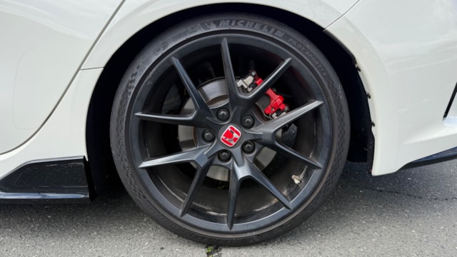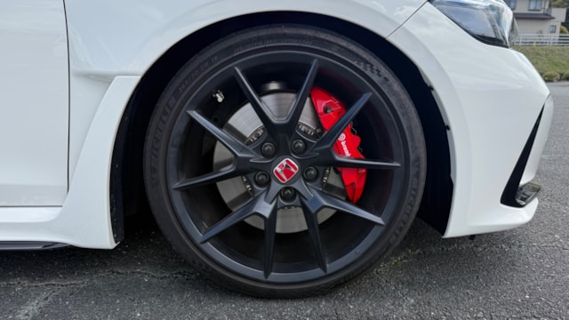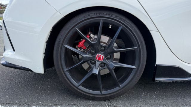 シビック タイプR 2024年式 カタログ値 型式 6BA-FL5 全長×全幅×全高 4595×1890×1405mm ホイールベース 2735mm トレッド前/後 1625/1615mm 室内長×室内幅×室内高 1915×1545×1145mm 車両重量 1430kg エンジン型式 K20C 最高出力 330ps(243kW)/6500rpm 最大トルク 42.8kg・m(420N・m)/2600~4000rpm 種類 水冷直列4気筒DOHC16バルブターボ 総排気量 1995cc 内径X行程 86.0mm×85.9mm 圧縮比 9.8 過給機 ターボ 燃料供給装置 電子制御燃料噴射式(ホンダPGM-FI) 燃料タンク容量 47リットル 使用燃料 無鉛プレミアムガソリン