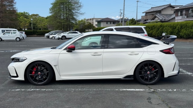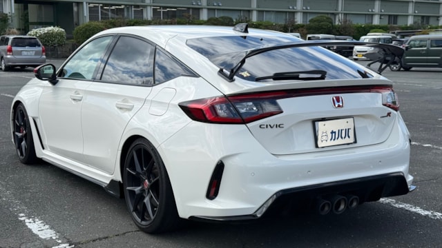 ■装備 ・Honda純正ナビ ・TV機能 ・Bluetoothオーディオ ・ETC ・Honda LogR ・左右独立オートエアコン ・電動パーキングブレーキ ・オートブレーキホールド ・ドライブモード切替 ・+Rモード ・6速MT ・Type R専用スポーツシート ・アルミペダル ・USBポート ・12V電源ソケット ・大型リアウイング ・センター3本出しマフラー ・赤アクセント付きドアミラー ・Color Concept↓ detan FL5 SUPER LOWFORM SUS detan FL5 カーボンマフラーカッター detan FL5 フェンダーダクトロックガード ■付属品 ・デジタルインナーミラー(前後ドライブレコーダー機能付き/PORMIDO製 11インチ) ・TVキャンセラー(JES TV CONTROL NAVI-SV HNC-214) ・フロアマット+ゴムマット二重仕様 〇車両説明 2022年登場のホンダ シビック タイプR FL5は、シリーズ最強クラスの走行性能を誇るスポーツグレードです。 2.0L VTECターボ×6速MTのみの硬派な構成で、前輪駆動ながら高いコーナリング性能と加速力を実現。サーキットも視野に入る本格的な走りが魅力です。 専用エアロや大型ウイングを備えた外装は機能性重視のデザインへ進化し、内装は赤を基調としたタイプR専用空間に仕上げられています。 5ドアの実用性も兼ね備えており、「速さ」と「日常使い」を両立した完成度の高い1台です。 〇当車両良さ 本車両は、2026年3月にHonda正規ディーラーにて安心快適点検を実施済みで、エンジンオイル交換やリアブレーキ清掃まで対応されている個体です。バッテリー健全性100%、タイヤ残溝も十分に残っており、購入後すぐに乗り出しやすいコンディションが維持されています。 保管環境も良好で、以前は屋内ガレージ保管、現在も屋根付き駐車場にて保管。さらに雨天走行はこれまで1回のみ、後席ほぼ未使用と、使用状況からも丁寧に扱われてきたことが分かります。 装備面では、デジタルインナーミラー(前後ドラレコ付き)やTVキャンセラーを装着。加えて、純正フロアマットの上にラバーマットを重ねた二重仕様となっており、足元の汚れや傷みを抑えた状態が保たれています。 さらに本車両は、Color Concept製のカスタムパーツを装着しており、 ・SUPER LOWFORM SUS(約30mmローダウン) ・カーボンマフラーカッター ・フェンダーダクトロックガード といった、見た目と実用性を両立したカスタムが施されています。過度な改造ではなく、仕上がりの良さを意識した内容で、車両の魅力を引き上げています。 また、ノーマルサスペンションや純正ミラーカバーも保管されており、純正状態に戻せる点も安心材料です。加えて、リアガラスおよびリアウイング周辺にはオーナー様ご自身によりシーラー処理が施されており、防水性やコンディション維持への配慮も見受けられます。 〇車両状態 ・外装 フロントバンパー下すり ガード部品はがれ 左リアホイールガリ傷 *その他お車の詳細につきましては、現車確認動画にて解説しておりますのでそちらをぜひご参考ください。 ・内装 査定時、シートの目立つ破れや異臭など見受けられず、中古車として良好な状態保たれております。