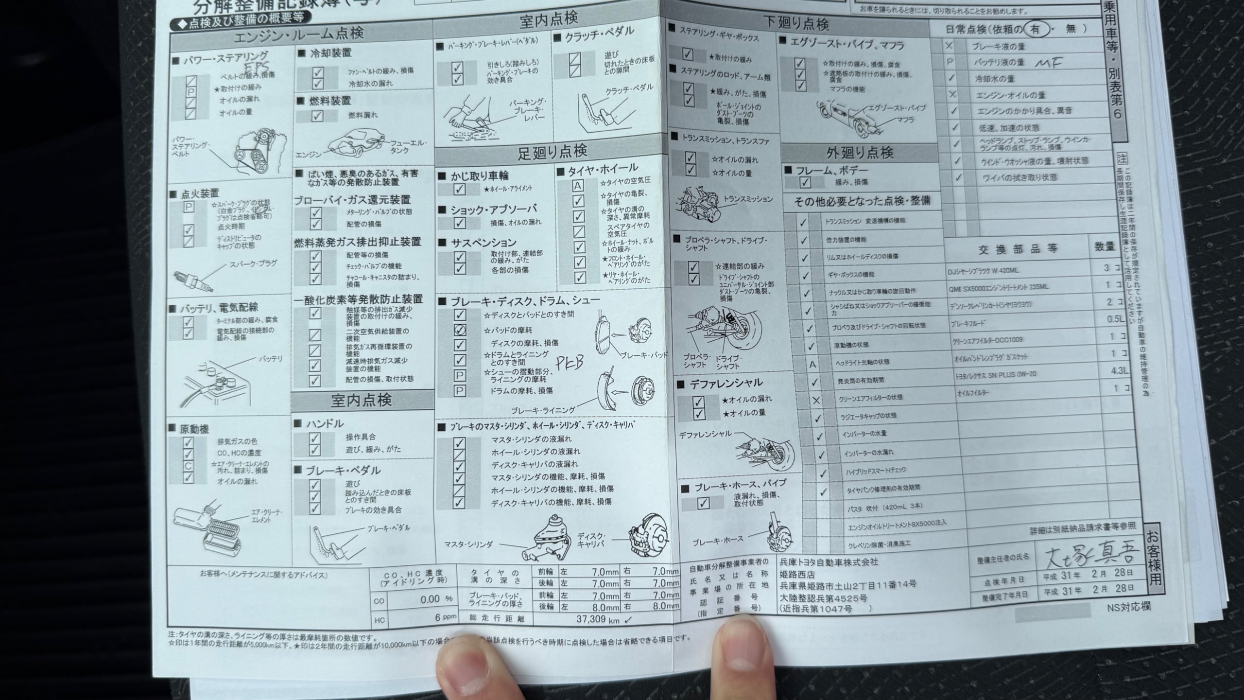 消耗品情報(エスティマハイブリッド アエラス プレミアムエディション)