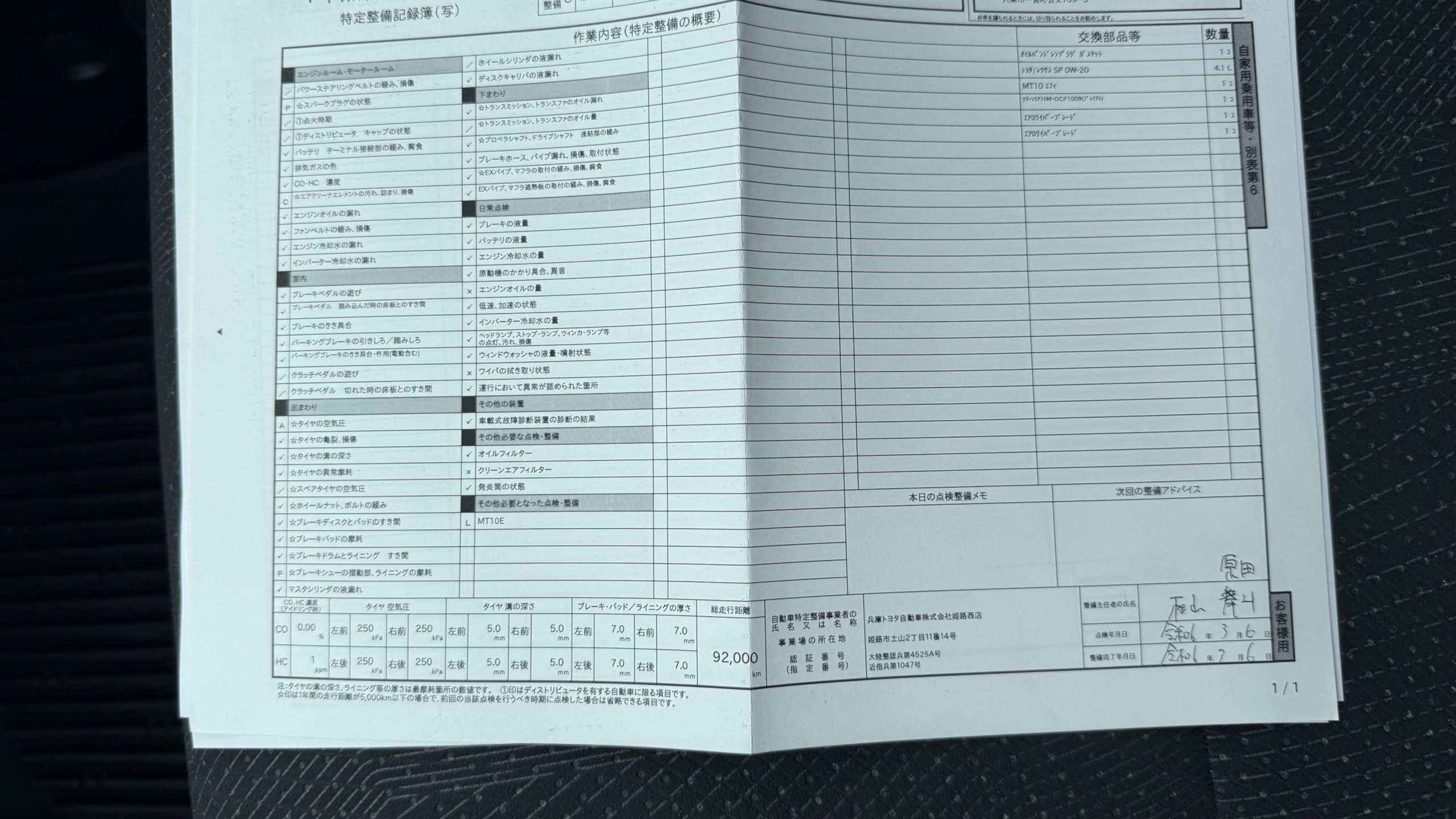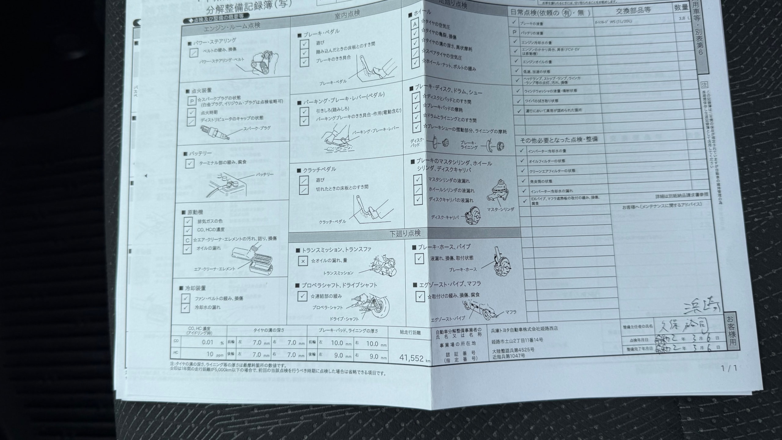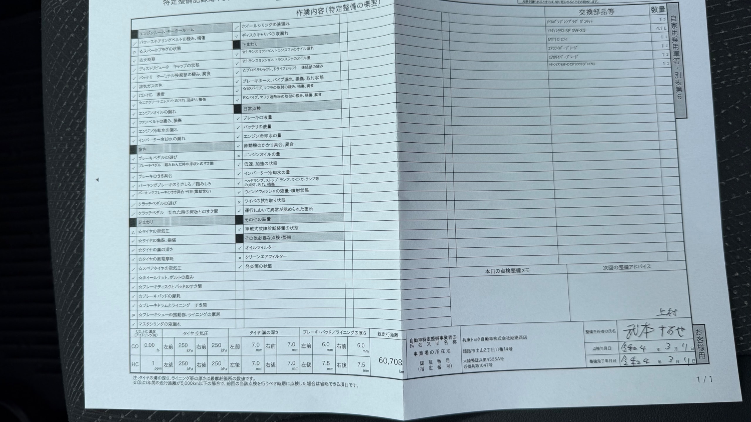 | エンジンオイルの状態 | - |