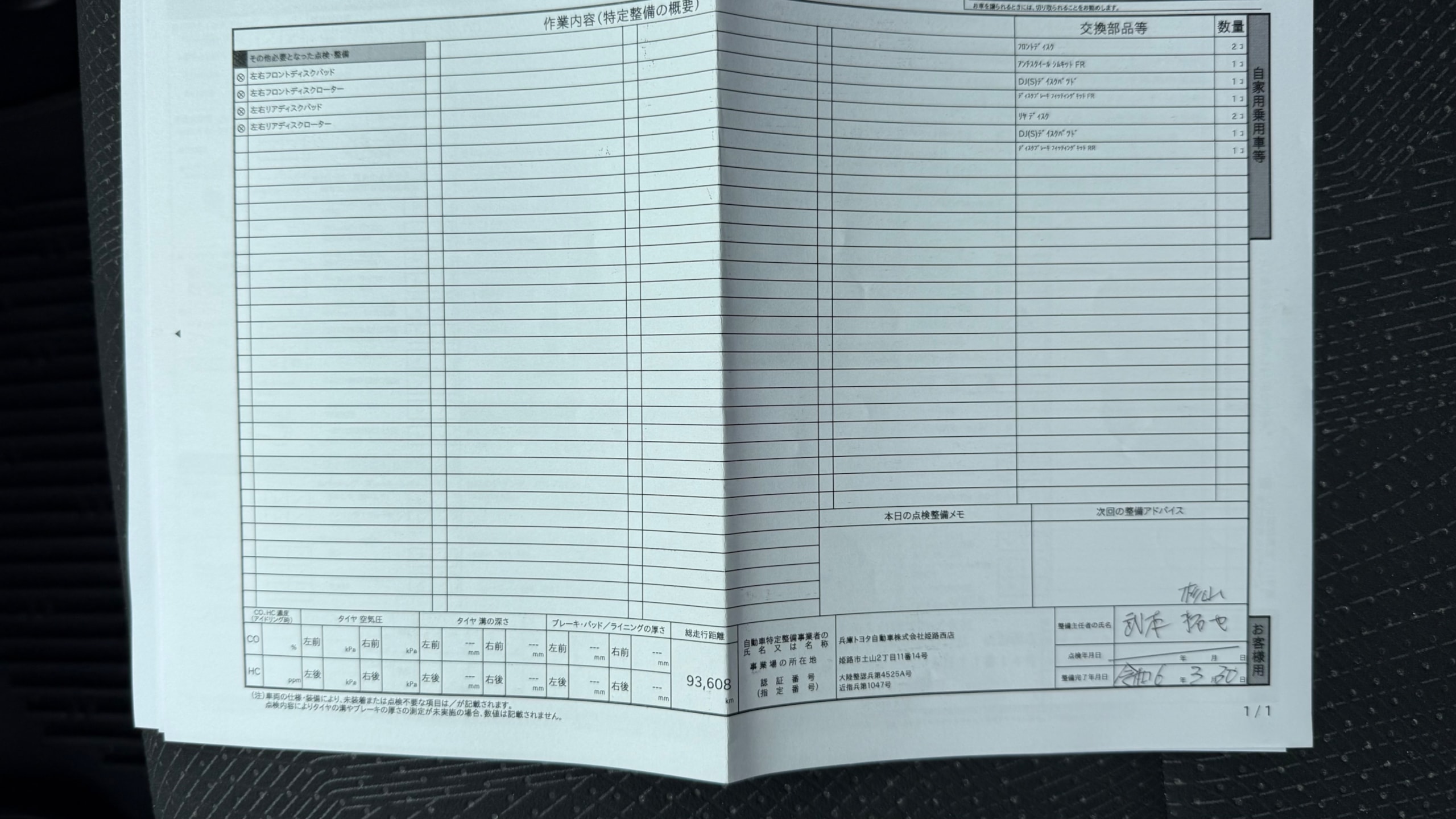 | ブレーキパッドの状態 | - |