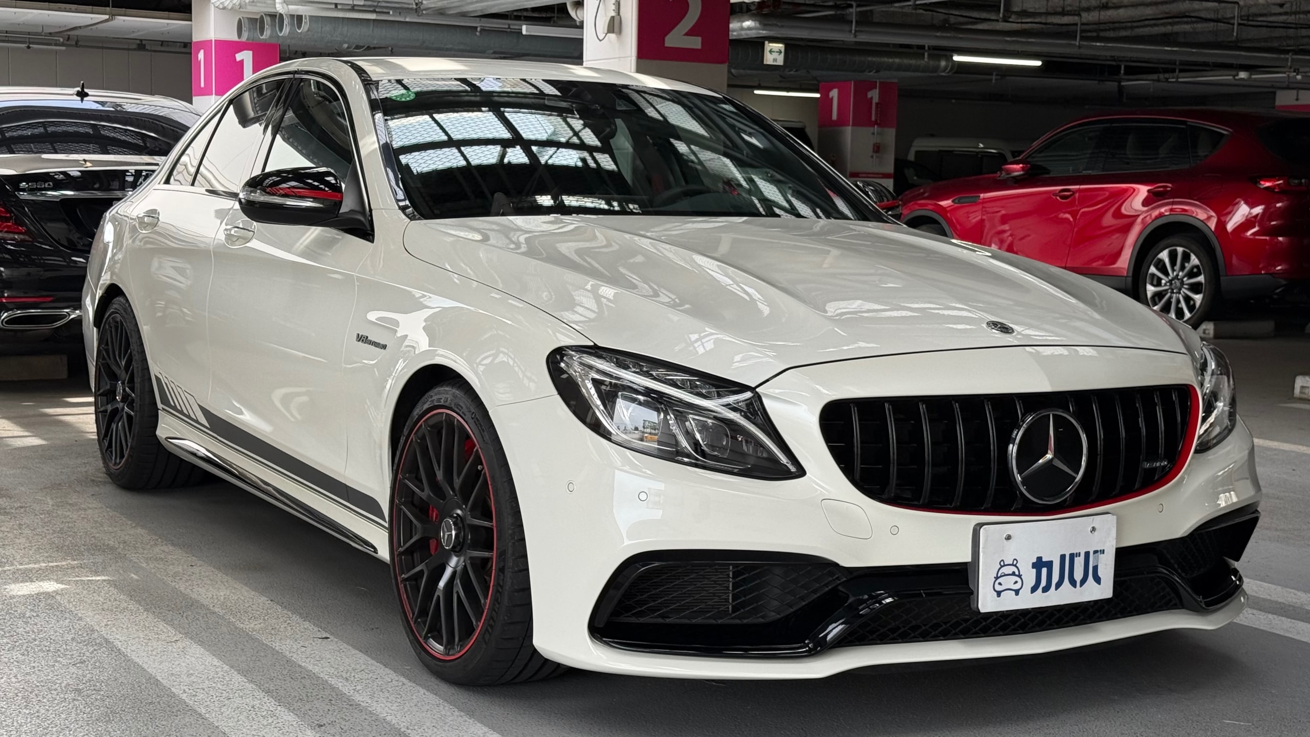 【車両概要】 2015年式 メルセデスAMG C63 S エディション1がカババに登場です! AMGが手掛けるハイパフォーマンスセダンで、4.0L V8ツインターボエンジンによる圧倒的なパワーと迫力のサウンドが魅力の一台! 中でも「エディション1」は専用装備を備えた特別仕様車となっており、通常モデルとは一線を画す存在感を誇ります。 【車両アピールポイント】 ・希少な左ハンドル仕様(数台限定) ・走行距離23,000km程の低走行 ・屋内保管による良好コンディション 市場でも流通の少ない左ハンドルのエディション1はコレクション性も高く、コンディションの良さも相まって非常に魅力的な一台です! V8エンジンならではの力強い走りとAMGらしいダイナミックなドライビングフィールを存分にお楽しみいただけます。 【車両装備】 ◼️特別装備 ●専用ハイグロスブラックパーツ (フロントバンパー/リアバンパー/ドアミラー /ウィンドウアーチモール/サイドスカート/AMGトランクリッドスポイラーリップ) ●専用レッドアクセント (フロントグリル/ドアミラー/アルミホイール) ●エクスクルーシブパッケージ ・ヘッドアップディスプレイ ・ハンズフリーアクセス(トランクリッド自動開閉機能) ・エアバランスパッケージ(空気清浄機能、パフュームアトマイザー付き) ・Burmesterサラウンドサウンドシステム ・盗難防止警報システム(牽引防止機能、室内センサー) ●他 ・専用マットブラックペイント19インチAMGクロススポークアルミホイール(鍛造) ・専用サイドデカール ・AMGレッドカーボン/アルミニウムインテリアトリム ・専用AMGパフォーマンスシート(レッドダイヤモンドステッチ入り) ・専用AMGパフォーマンスステアリング(DINAMICA/Edition 1ロゴ・レッドセンターマーキング・レッドステッチ入り) ・ナッパレザー ドアセンターパネル(レッドダイヤモンドステッチ入り) ・レッドシートベルト ・レッドパイピング付AMGフロアマット ◼️カスタム ・パナメリカーナグリル(純正パーツあり/※別途着払いでのお渡し可能てす。) 【車両状態】 ■外装: 年式や走行距離を考慮すると全体的に良好な状態を保たれております。 ・左ホイールガリ傷 ・フロントバンパー交換実施(中古購入時に少し傷があったため) ・フロントバンパー下部擦り傷 ■内装: 通常使用による使用感はございますが、目立った破れは取材時には確認できませんでした。 ・車内ファブリーズの芳香剤を設置されており、甘めの香りがいたします。 ・また、現オーナー様ご自宅でトイプードルを飼われております。乗車歴は一度もございませんが、アレルギーをお持ちの方はご注意ください。 ■エンジン系統:取材時アイドリング等は安定しており、異音や異臭などはエンジンルームなどからも感じられませんでした。 お車のクオリティや車内の詳細が気になる方は、お気軽にお問い合わせ下さい!🚗 《重要》本車両に対する予防整備(消耗品等)の不具合、劣化等に関しては免責事項となります。 ※本車両は10年以上前の車両のためノークレームノーリターンのお取引となります。予めご了承ください。