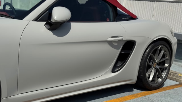 【車両アピールポイント:ポルシェ 718スパイダー 4.0】 ■ 本車両の最大の特徴 本車両は、ポルシェの人気色「クレヨン」をベースに、高価なスプレー式PPF「フェニックス・スクラッチガード」をフルボディに施工した唯一無二の個体です。100万円を優に超える施工費用により、塗装の保護と「サテン(マット)仕上げ」による圧倒的な存在感を両立しています。 【こだわりの主要オプション・装備】 ▼エクステリア ・外装色:クレヨン(スペシャルカラー) ・フルボディPPF施工:フェニックス・スクラッチガード(マット/サテン仕上げ) ※スプレー工法のため、フィルムのような継ぎ目がなく美しい仕上がりです。 ・ポルシェ・ダイナミック・ライトシステム(PDLS) ・電動格納ミラー ・社外バルブコントローラー ※4.0L NAエンジンの官能的なサウンドを低回転から任意に解放可能です。 ▼インテリア ・スパイダー・クラシックインテリアPKG(ボルドーレッド/ブラック) ※オープン時の華やかさと高級感を決定づける必須パッケージです。 ・マルチファンクションステアリングホイール(ステアリングヒーター付) ・シートヒーター ・ライトデザインPKG ▼オーディオ・電装 ・BOSEサラウンドシステム ・ドライブレコーダー(前方) 【セールスポイント💡】 ⭐️「マット・クレヨン」の希少性と鉄壁の保護 最大の魅力は「フェニックス・スクラッチガード」による全面保護です。自己修復機能も備えており、飛び石や洗車傷を気にせず、4.0L NAの走りを心ゆくまで堪能できます。購入後に追加で施工する必要がなく、このまま完成されたスタイルで乗り出せる点も、次期オーナー様への大きなメリットです。 【車両紹介】 718シリーズの中でも自然吸気4.0Lフラット6を搭載するスパイダーは、純粋なドライビング体験を追求した「絶滅危惧種」とも言えるモデルです。 ボクスターGTS 4.0と比較してより硬派な足回りと、スパイダー専用のリアデッキリッドが描くシルエットは、他のオープンモデルとは一線を画す特別なオーラを放ちます。現代の信頼性と、クラシックな走りの楽しさが最高純度で結晶した一台です。 【メンテナンス・状態】 ・整備履歴:2025年9月の車検はポルシェ専門店にて実施。それ以前も定期的にディーラーにて整備を行っており、機関系は極めて良好です。 ・外装:全面PPF保護のおかげで、ボディ本体へのダメージは最小限です。フロント下部に使用に伴う擦り傷はありますが、通常視点では目立たず、全体として素晴らしいコンディションを維持しています。 ・室内:完全禁煙車であり、内装のレザーや幌の状態も良好です。不快な臭いも一切ございません。 自動車テスターによる診断(オーバーレブ診断含む)はカババでは実施しておりません。保証継承時にエラーコードなどが検出された場合は出品者様との協議の上で解決していく事になります。