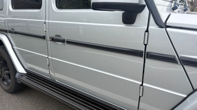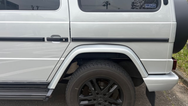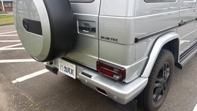 【おすすめ/オプション装備】 ・スライディングサンルーフ ・harman/kardon サラウンドサウンドシステム ・ブラック塗装済み純正18インチアルミホイール ・ブラックフロントグリル(ラッピング) ・ブラックサイドステップ(ラッピング) ・ブラックテールランプ(塗装) ・ラゲージボード ・リアビューカメラ ・本革巻ステアリング&シフトノブ ・メモリー付パワーシート ・前後シートヒーター ・センターコンソールトレイ ・アンビエントライト ・ドリンクホルダー ・前後ドライブレコーダー ・ETC ※取説・記録簿・スペアキーあり ○モデルの特徴 2015年式 メルセデス・ベンツ Gクラス G350ブルーテックは、伝統のラダーフレーム構造とデフロックを備える本格オフローダーでありながら、3.0L V6クリーンディーゼルターボを搭載し、高トルクと優れた燃費性能を両立したモデルです。力強い走破性はそのままに、ディーゼル特有の粘り強い加速で街乗りから高速巡航まで余裕あるドライブを実現。重厚なスクエアボディと上質なレザー内装が織りなす唯一無二の存在感も魅力です。堅牢性・快適性・ステータス性を高次元で融合させた、実用性の高いGクラスといえます。 ○セールスポイント 本車両はブラック塗装済みの純正18インチアルミホイールをはじめ、フロントグリルやサイドステップにはブラックラッピングを施工。さらに、テールランプもブラック塗装が施されており、全体的に統一感のある引き締まったスタイルに仕上がっています。ぜひ前向きにご検討ください! 【車両状態】 ■ガラスのキズ・状態 軽微な飛び石傷はありますが、車検に影響のある大きな破損なし。 ■外装 ・右フロントドアに板金塗装及び錆あり ・フロント/リアバンパーに傷多数 ・左フロントドアに線傷 ・左右サイドシル樹脂パーツに経年劣化 ■エンジン音と振動 取材時のアイドリングは非常に安定しており、異音や不自然な振動は確認取れませんでした。 ■内装 ・シートにシワ/スレ有り ・ステアリング/シフトノブに小傷多数 大きな傷等もなく、全体的には非常に綺麗な状態を維持しています。 ■車内・エアコンのニオイ 芳香剤利用がございますが、清潔感のある車内を維持しており、タバコ臭・ペット臭など、不快なニオイは一切確認できませんでした ■特記事項 ・助手席側ドアロック不具合 ※オーナー様はご自宅で犬を飼われておりますが、乗車歴はございません。 《重要》購入前にご確認をよろしくお願いします。 ※本車両は10年以上前(10万km以上走行)の車両の為、ノークレームノーリターンのお取引となります。予めご了承ください。また、本車両に対する予防整備(消耗品等)の不具合、劣化等に関しては免責事項となります。