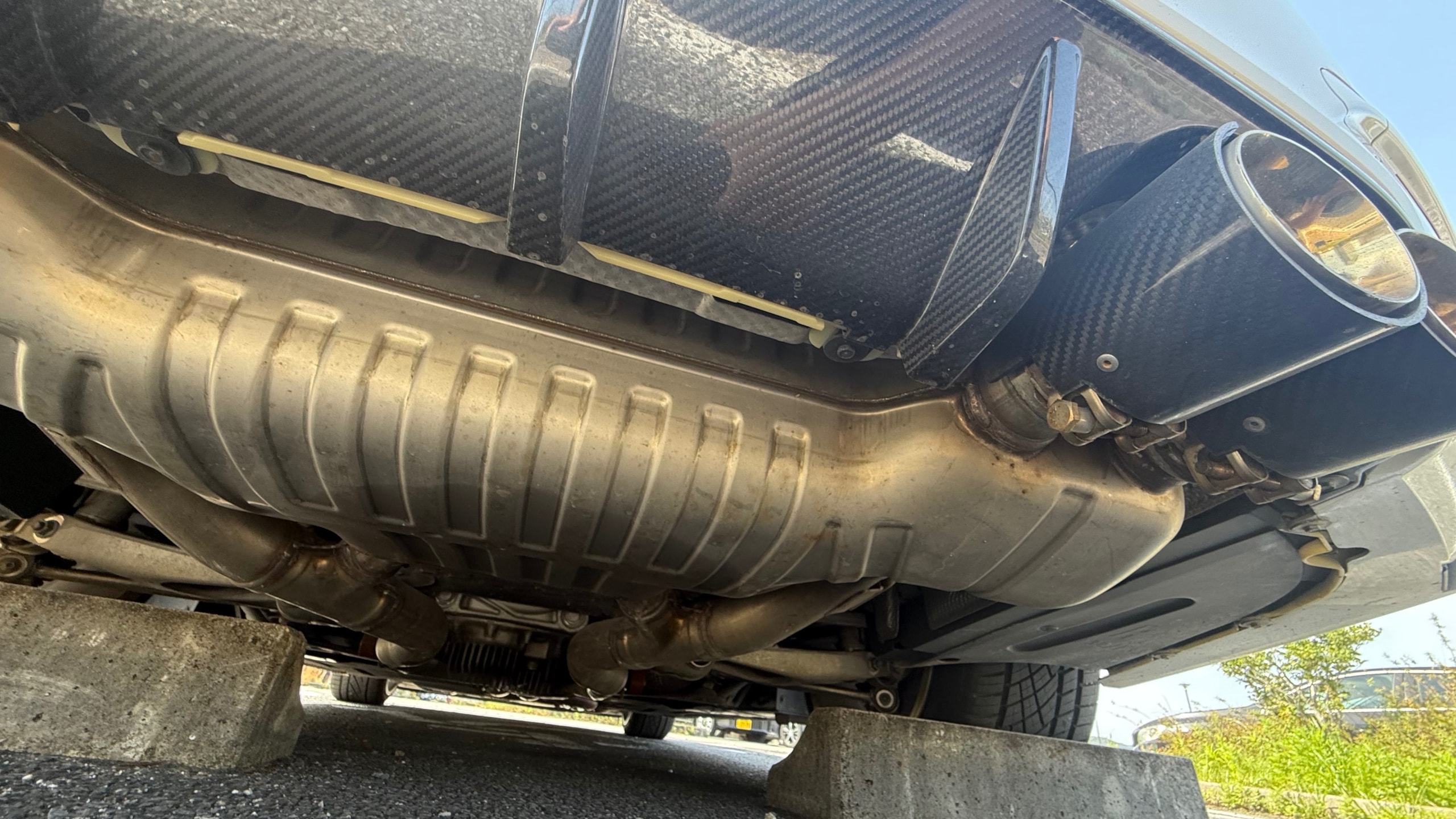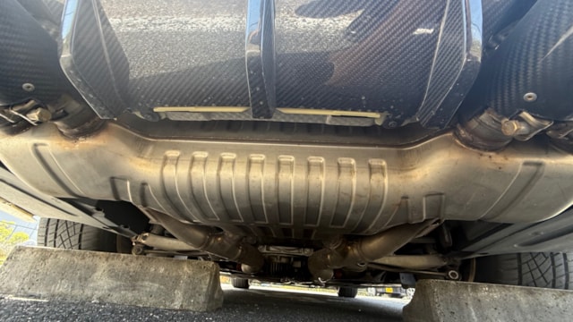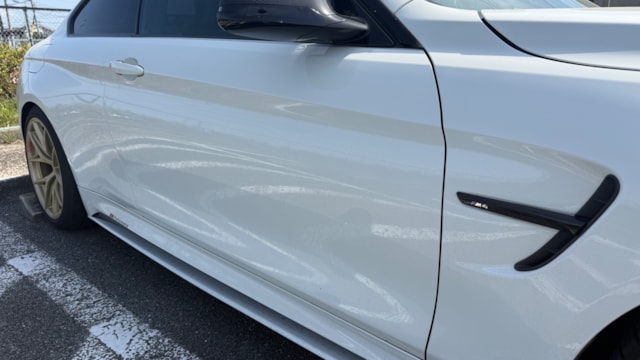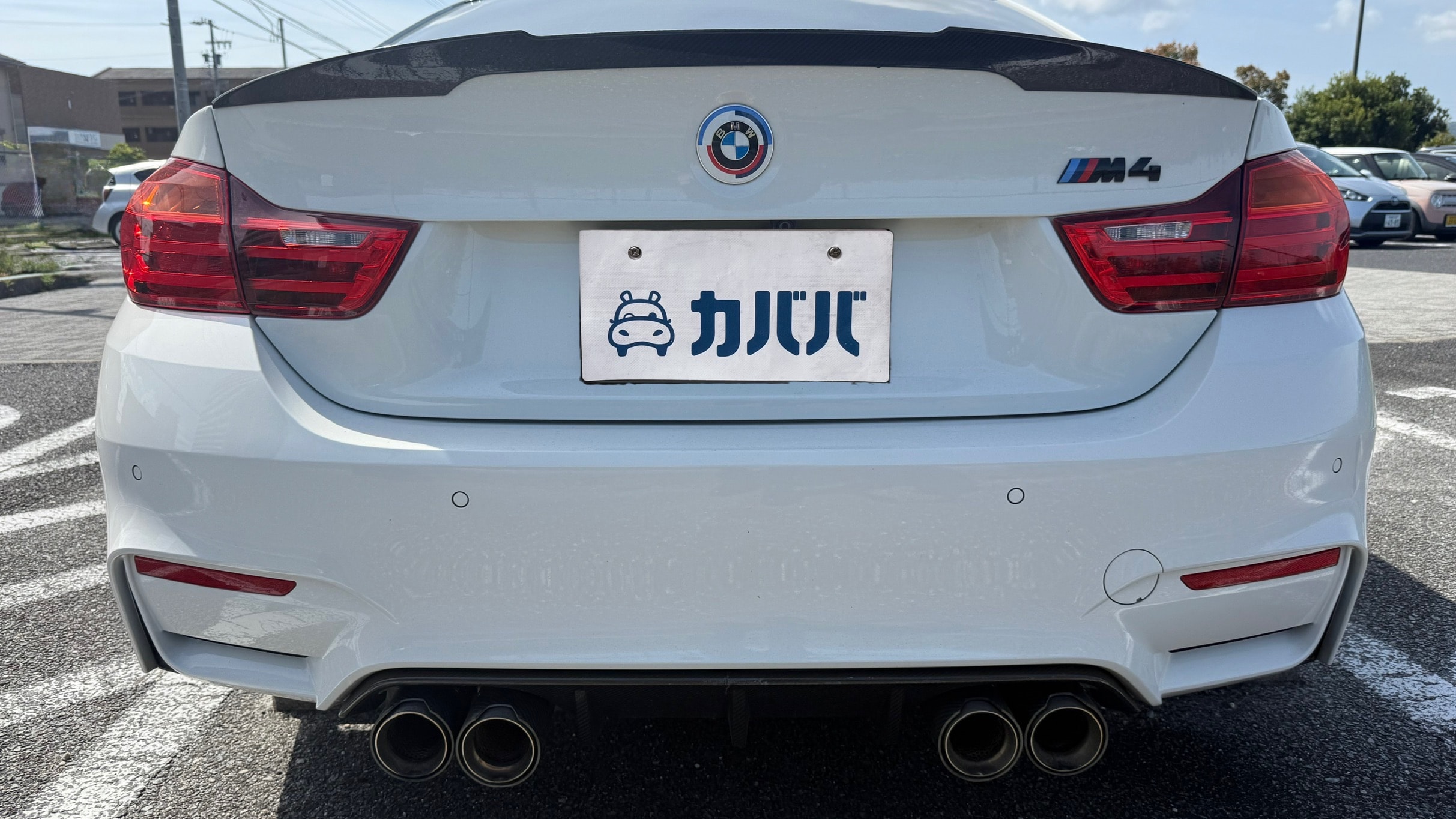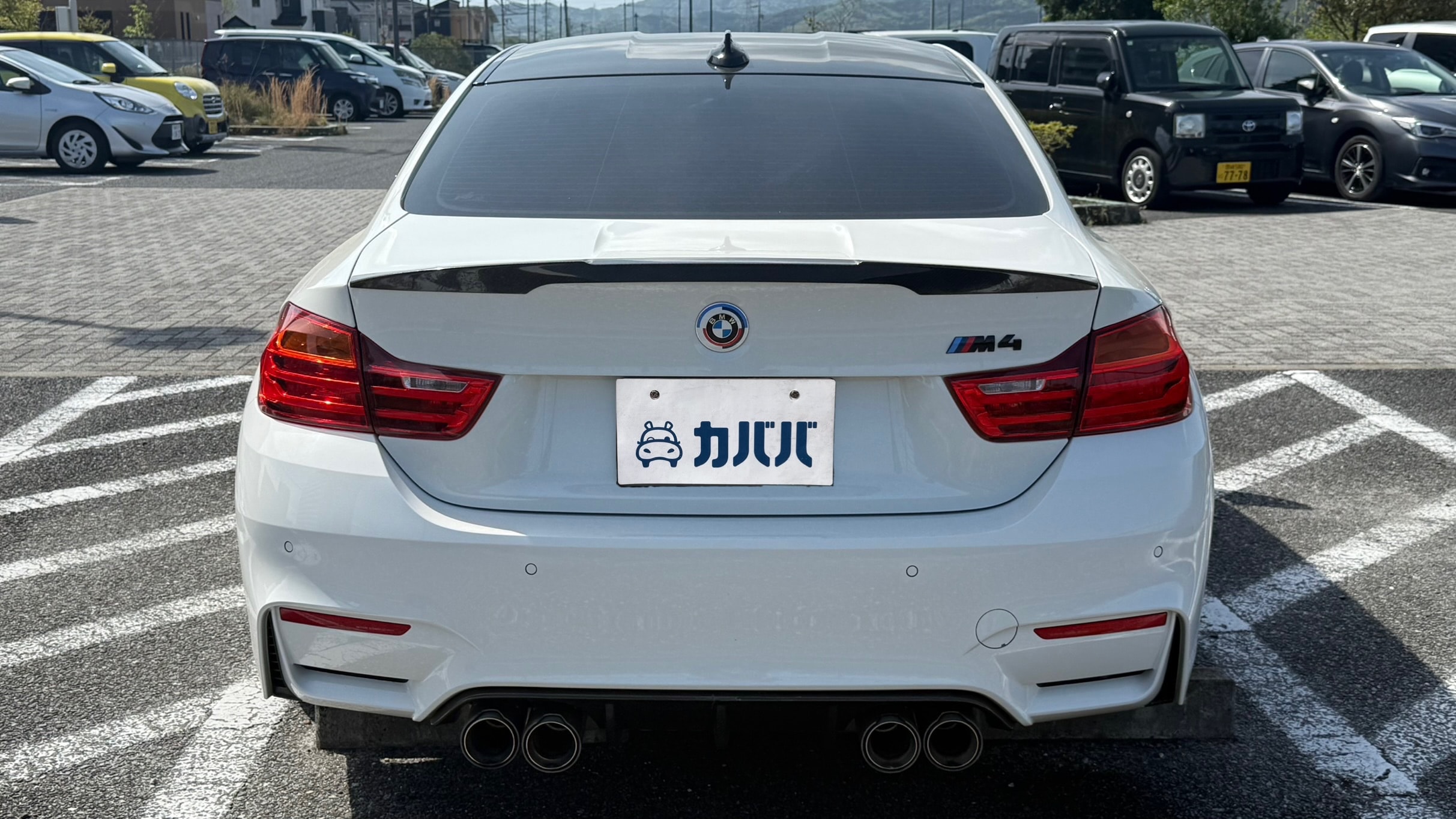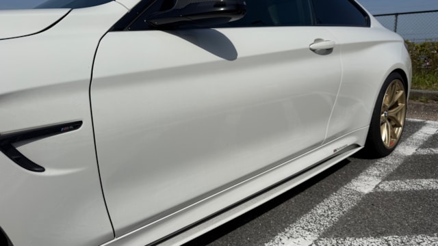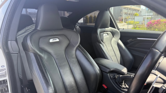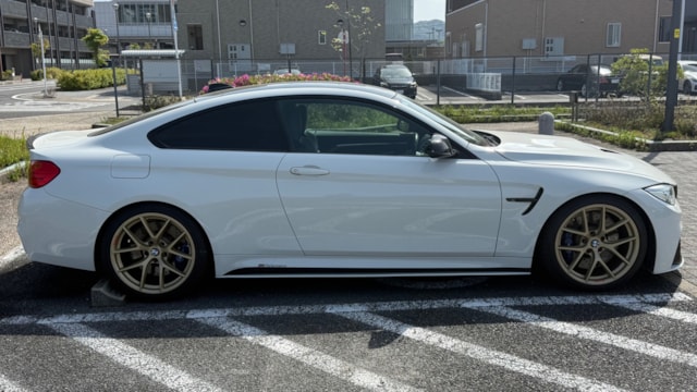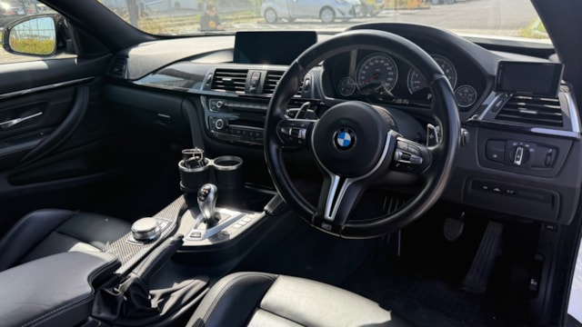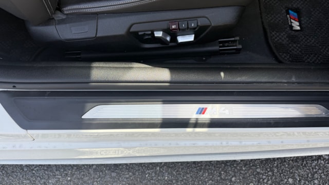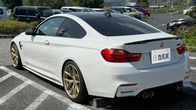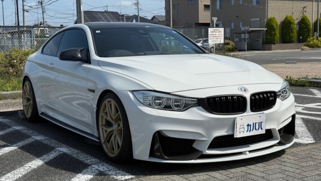 【装備一覧】 ●エクステリア・足回り ・カーボンルーフ ・GTSタイプ アルミボンネット ・Mパフォーマンス フロントスポイラー ・Mパフォーマンス リアスポイラー ・Mパフォーマンス フロントグリル ・Mパフォーマンス サイド ギル ・Mパフォーマンス フロントスプリッター ・Mパフォーマンス ミラーカバー ・Mパフォーマンス リアディフューザー ・社外マフラーカッター ・BBSアルミホイール ・アダクティブMサスペンション ・H&Rダウンサス ●パワー・制御系 ・bootmod3 DMEチューニング(Stage1) ・DCT GTSプログラム化 ・マフラーフラップ制御 ・スピードリミッター解除 ・Exhaust burbleカスタム ・GTSスタートアップサウンド ・MAXクーリングモード ・アンチラグ有効化 ●内装・快適装備 ・電動シート(メモリー付) ・ブラックレザーシート ・Mスポーツステアリング ・パドルシフト ・Apple CarPlay対応 ・レーダー探知機(Yupiteru) ・カーボンインテリアトリム 〇車両説明 BMW M4クーペは、3.0L直列6気筒ツインターボを搭載し、低回転から高回転まで力強く伸びる加速が特徴です。 M DCTドライブロジックにより素早い変速とダイレクトな加速を実現し、カーボンルーフ採用による軽量化と高剛性で走行安定性にも優れています。 〇この車の良さ このM4は、見た目だけでなく中身までしっかり作り込まれた完成度の高い1台です。 まずDMEチューニングにより約500馬力近くまで引き上げられており、純正とは一段違う加速感を実現。さらにトランスミッションもGTS仕様へ書き換えられているため、変速スピードやレスポンスも向上しており、踏んだ時のダイレクト感までしっかり仕上がっています。 加えてマフラーフラップを任意でコントロール可能なため、普段は静かに、走る時はしっかり音を楽しめる仕様。日常使いとスポーツ性を両立できる点も魅力です。 足回りにはH&Rダウンサスを装着し、見た目の低さだけでなくコーナリング時の安定感も向上。タイヤも交換後約1000kmと新しく、購入後すぐに交換の必要がないのも実用面で大きなメリットです。 またカーボンルーフやカーボンストラットブレースにより軽量化とボディ剛性を高めており、ハンドリング性能にも寄与。外装はMパフォーマンスパーツで統一されているため後付け感がなく、見た目としての完成度も非常に高い仕上がりです。 さらにApple CarPlay対応により、ナビや音楽などもスマートフォンと連携して快適に使用可能。年式による使い勝手の不便さもしっかりカバーされています。 加えて屋内保管・休日使用という扱われ方からも分かる通り、コンディション面にも期待が持てる1台です。 〇車両状態 ・外装 フロントガラス軽微な飛び石傷 左フロント/リアホイールガリ傷 フロントバンパー下すり 小傷 *その他お車の詳細につきましては、現車確認動画にて解説しておりますのでそちらをぜひご参考ください。 ・内装 査定時、シートの目立つ破れや異臭など見受けられず、中古車として良好な状態保たれております。